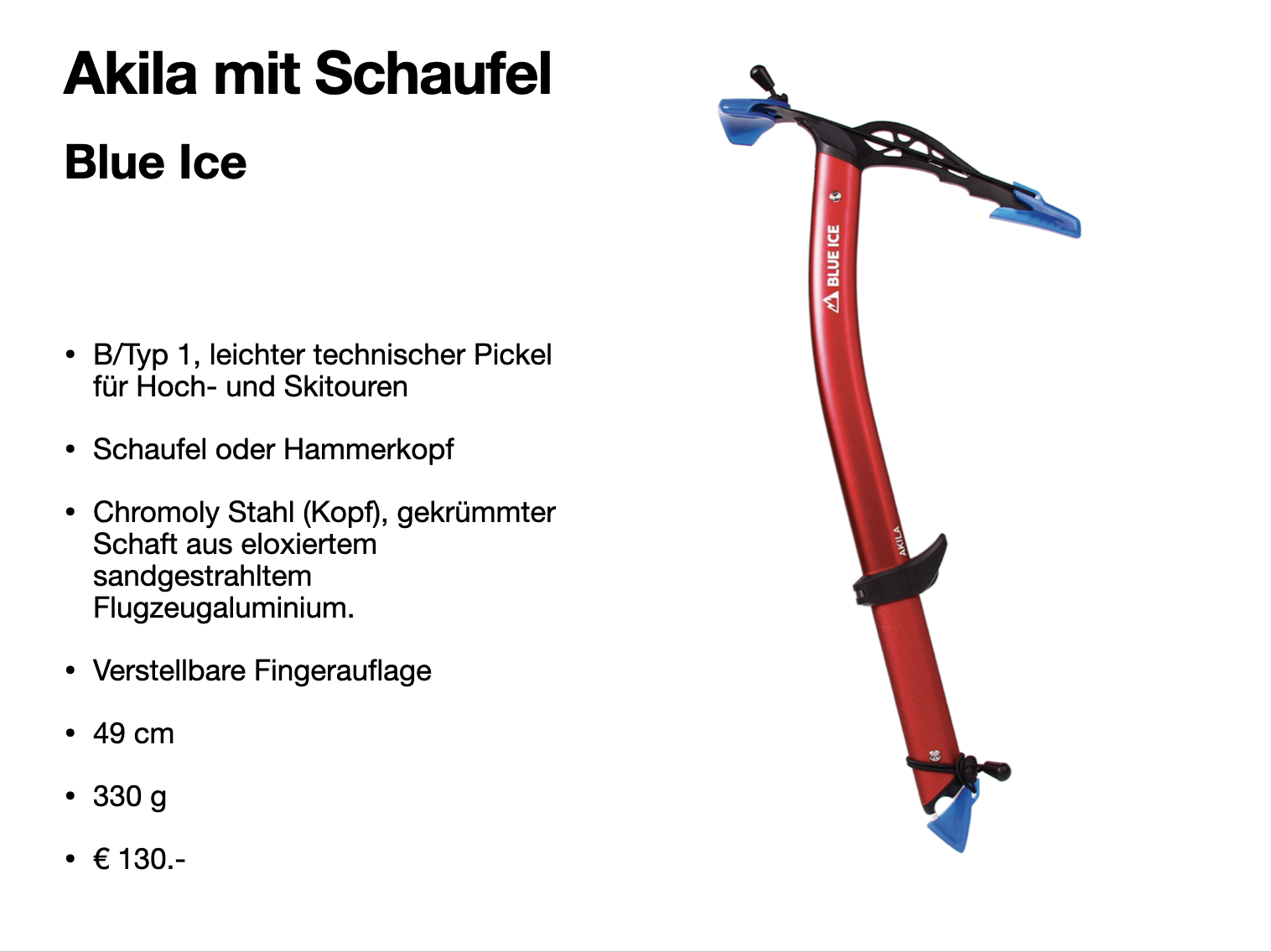Pickel sind für uns Arbeits- und Stützgeräte, deshalb verwende ich einen nicht zu langen Pickel ohne Handschlaufe. Ohne Handschlaufe, um ein schnelles Handwechsel zu ermöglichen. Sollte es etwas steiler werden kann ich den Akila, der auch für Eisflanken geeignet ist, an einer Leash zusätzlich sichern.