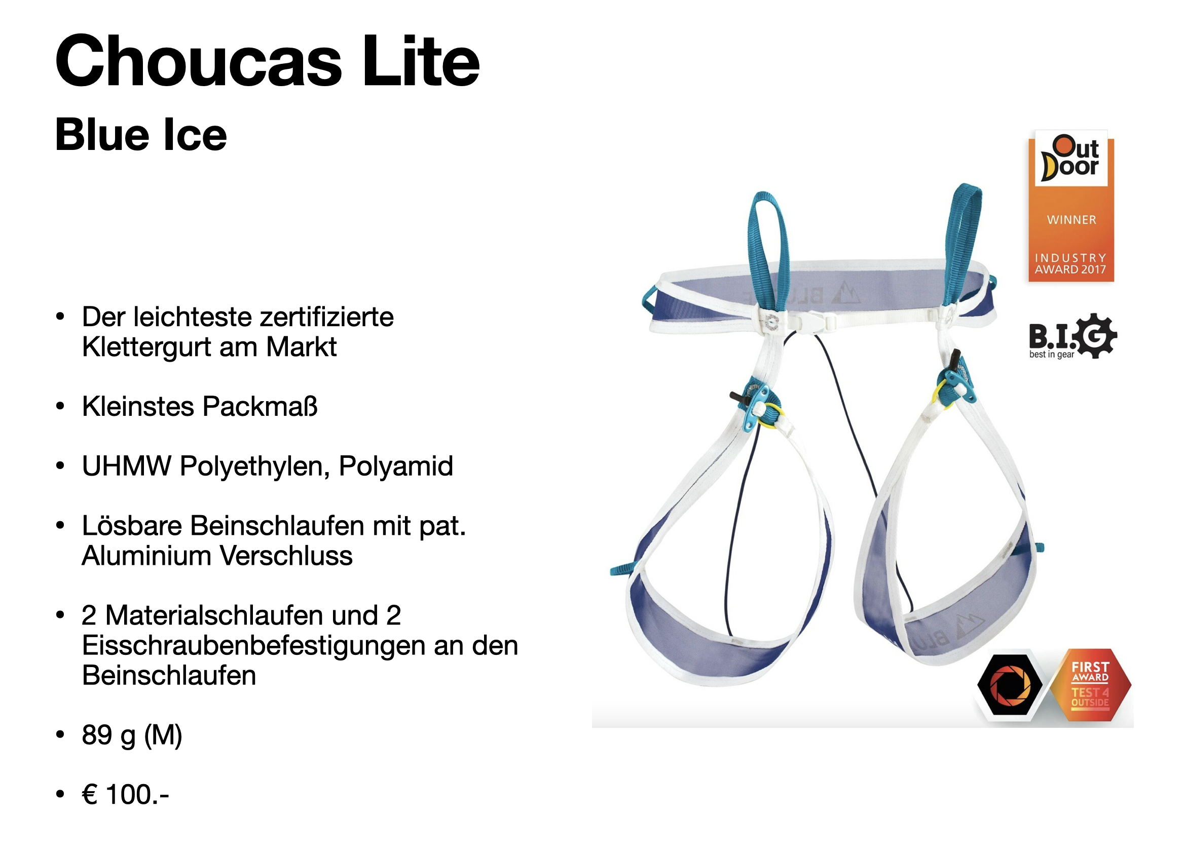 Viele weitere Firmen haben auch sehr schöne innovative Produkte. Blue Ice hat seine Gurte in den letzten Jahren überarbeitet oder neu entwickelt. Innovativ, visionär, Zielgruppen orientiert.