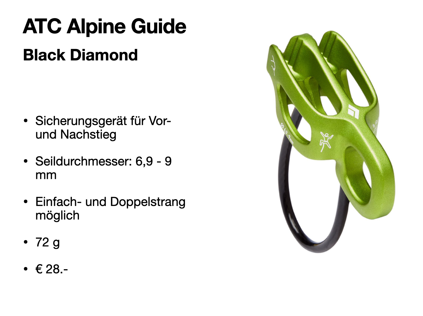 - Sportklettergurt oder leichter Hochtourengurt (Hüftgurt max. 5 Jahre alt)