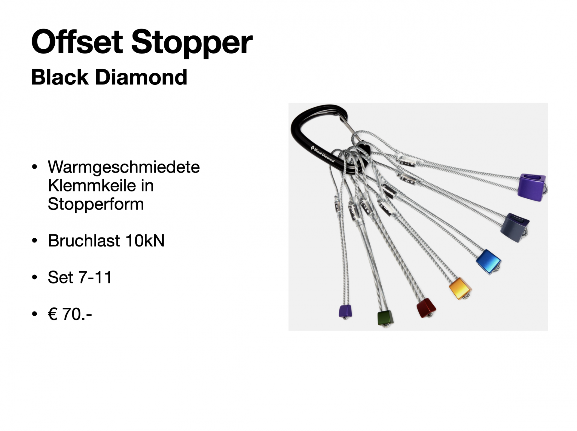 Mit einem kleinem Klemmkeil Sortiment kann ich immer wieder gute Zwischensicherungen anbringen oder Standplätze verbessern. Sie sollten auf jeder Hochtour dabei sein. Nur wer sie immer wieder wirklich anwendet, wird sich mit Klemmkeilen wohlfühlen, deshalb üben üben….