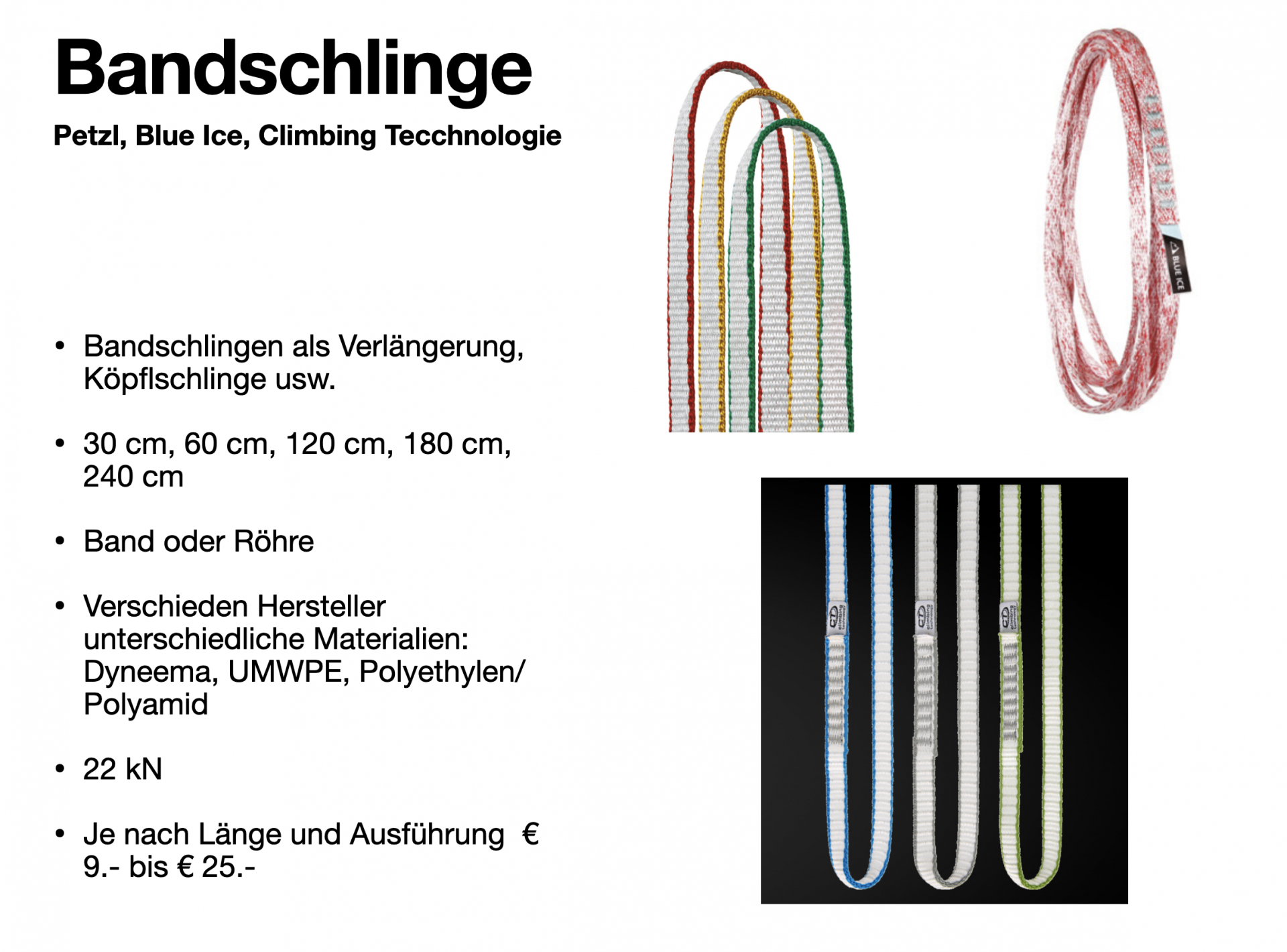 - 2-3 Bandschlingen abgenäht 60 cm (Empfehlung: Dyneemaschlingen 9mm oder breiter)