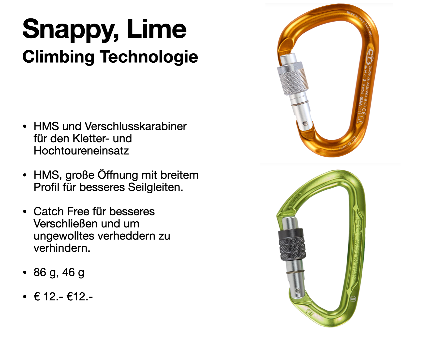 - 4 Schraubkarabiner( 2x HMS und 2x D)