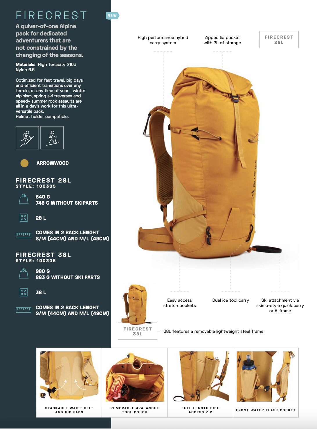 Firecrest in 28L und 38L jeweils in der Rückenlänge M und L