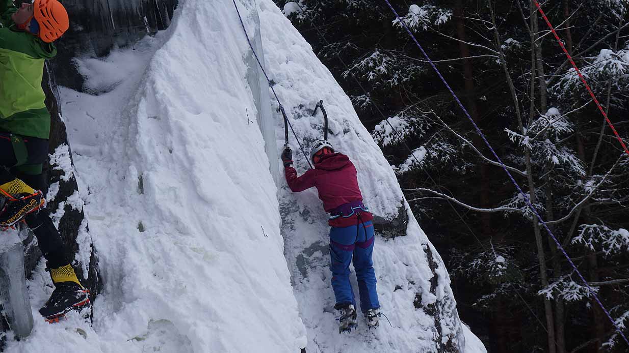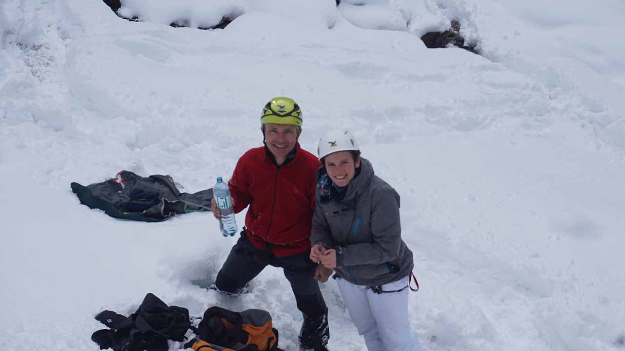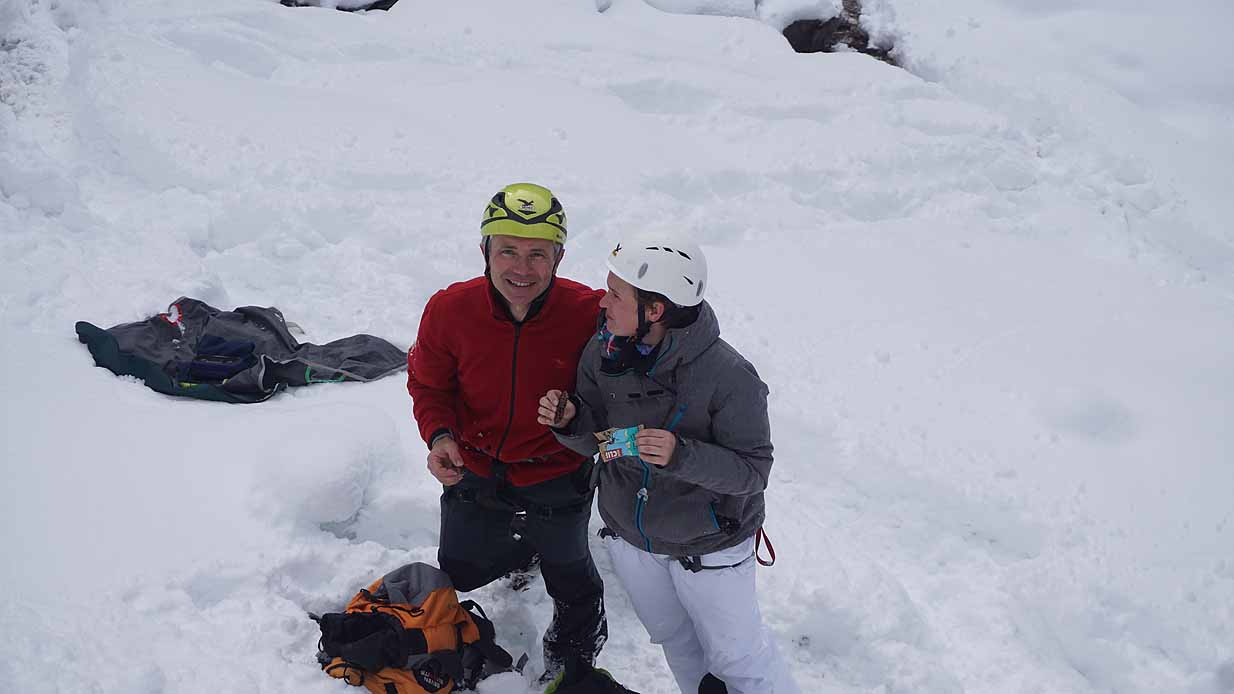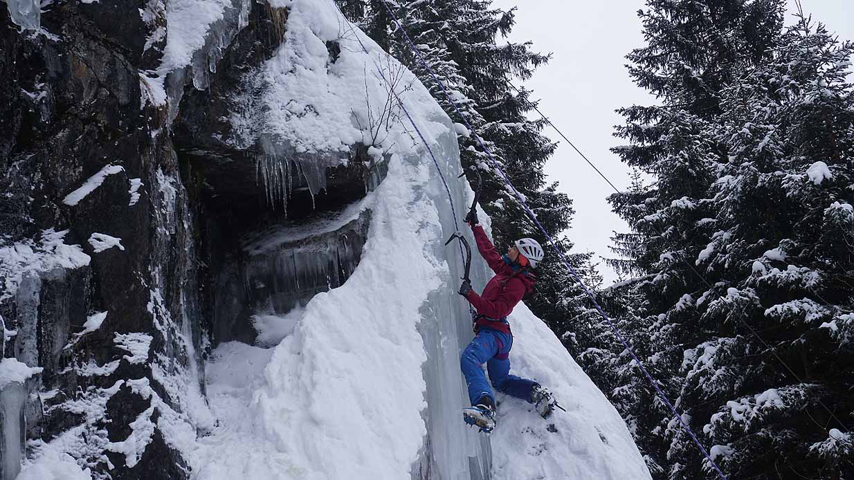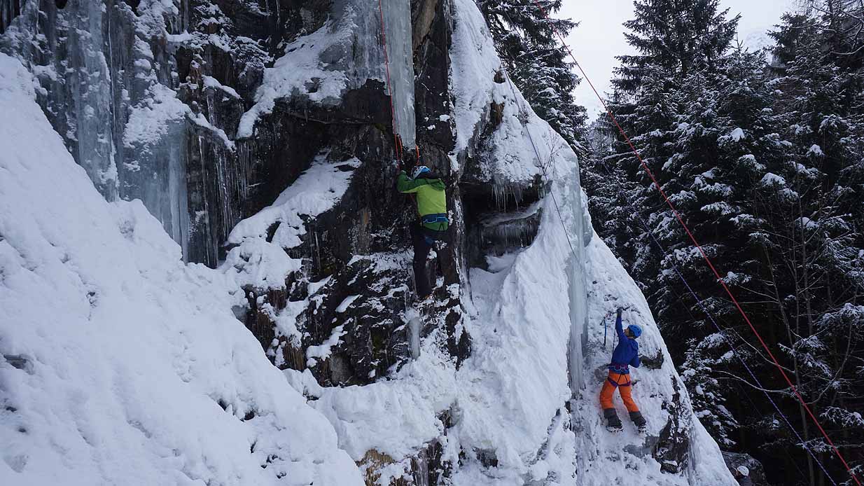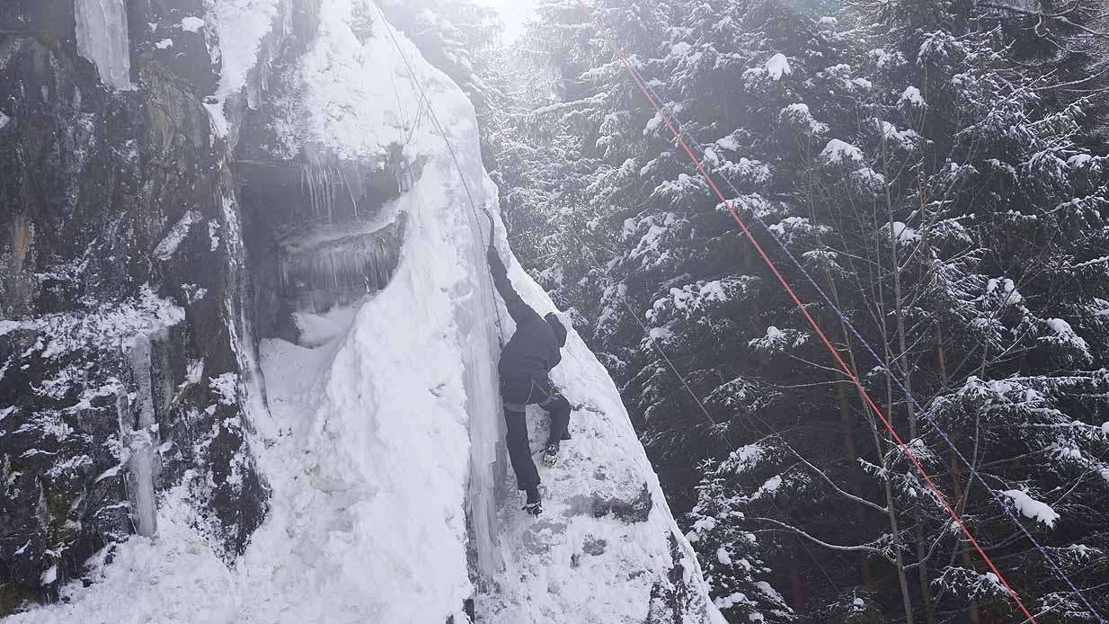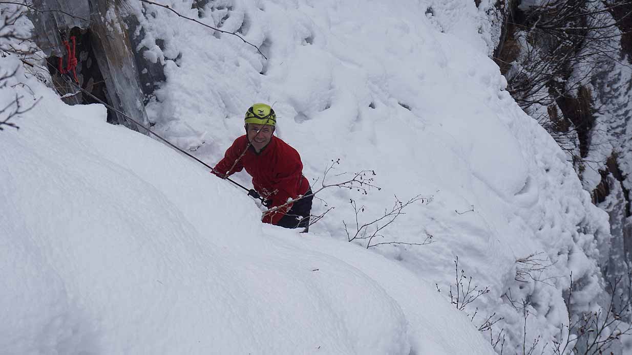 Eisklettern ist ein Freiluftsport und diesmal waren die Neuschnee Mengen eine besondere Herausforderung.