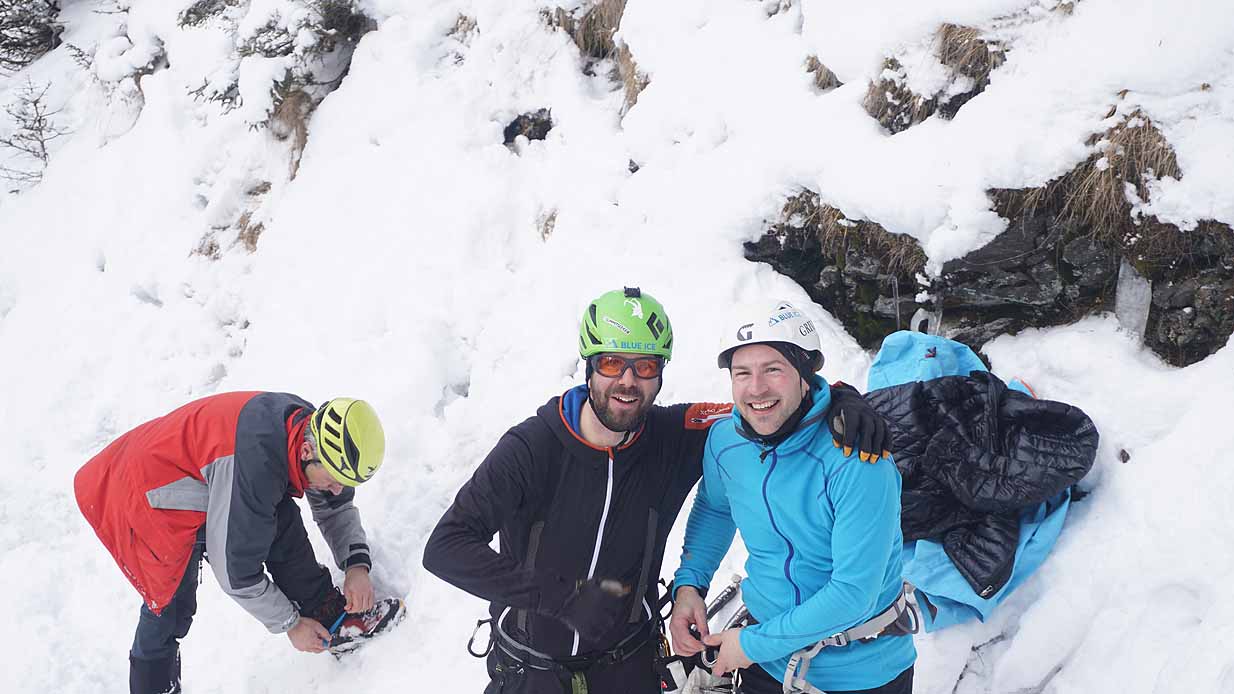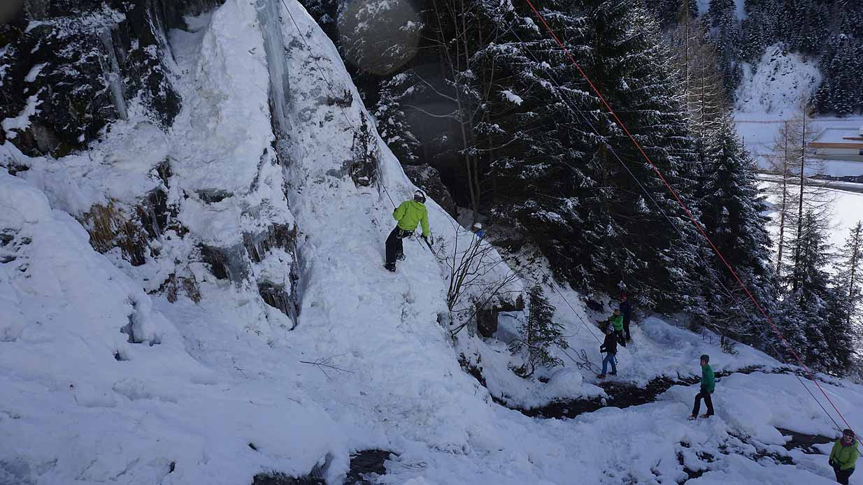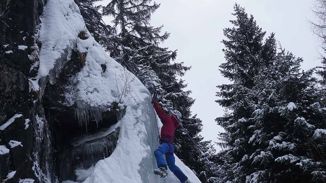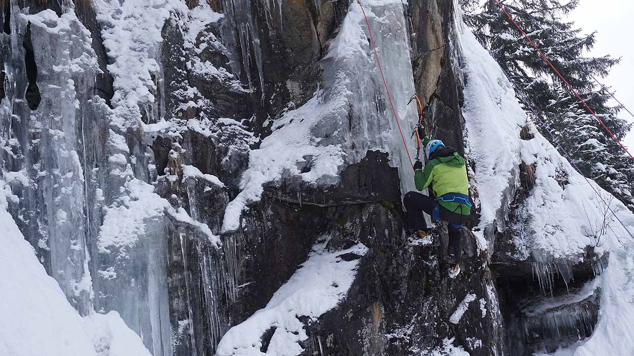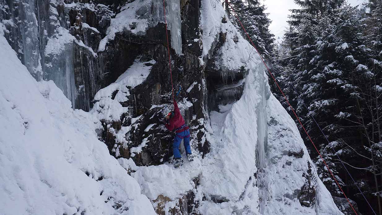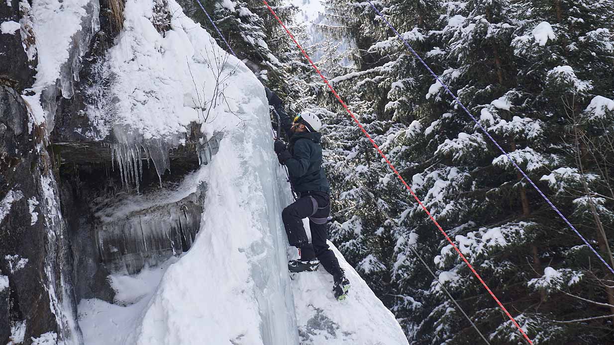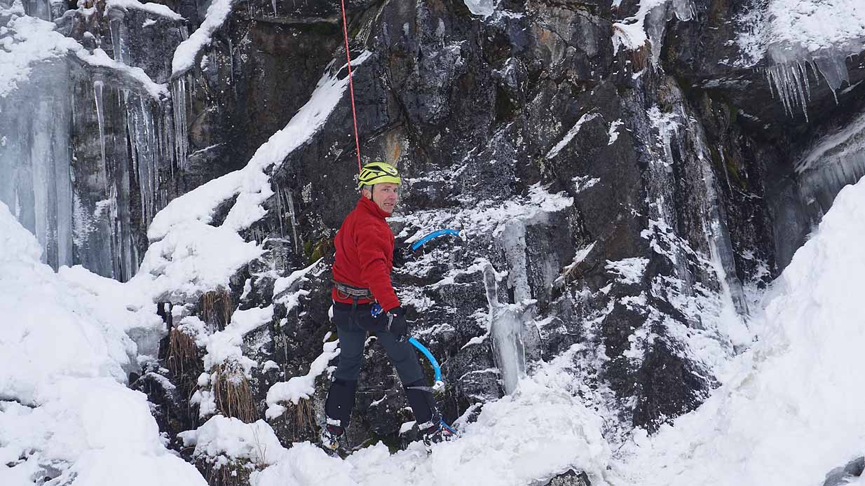 Eisklettern ist ein Freiluftsport und diesmal waren die Neuschnee Mengen eine besondere Herausforderung.