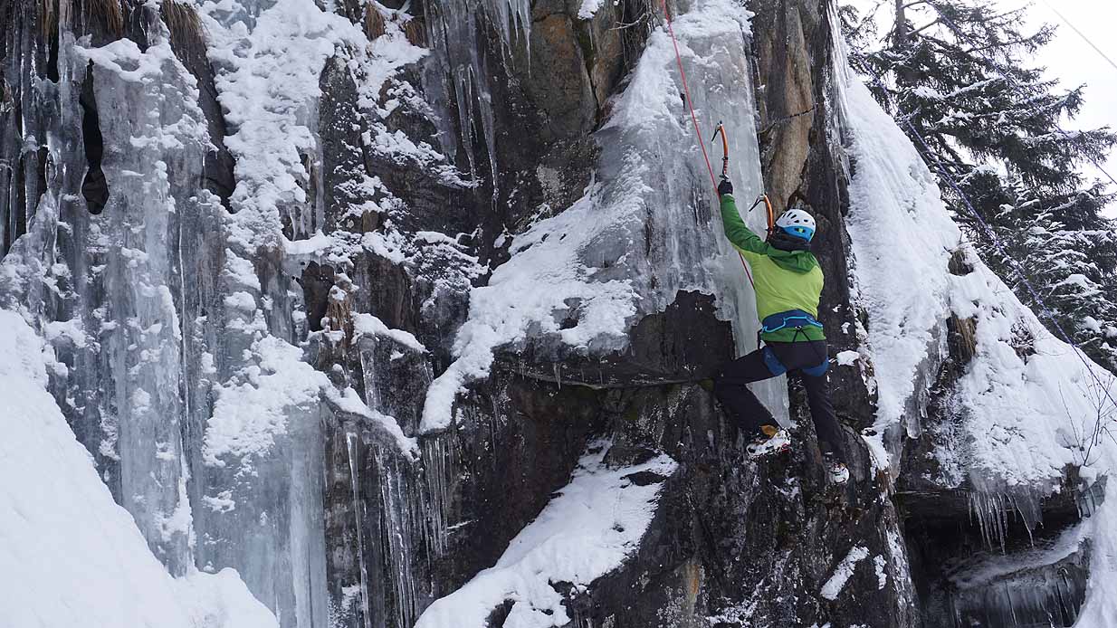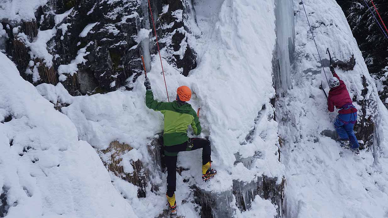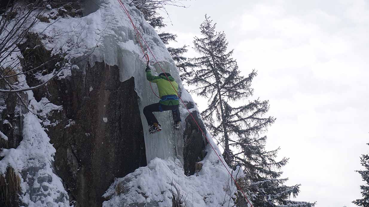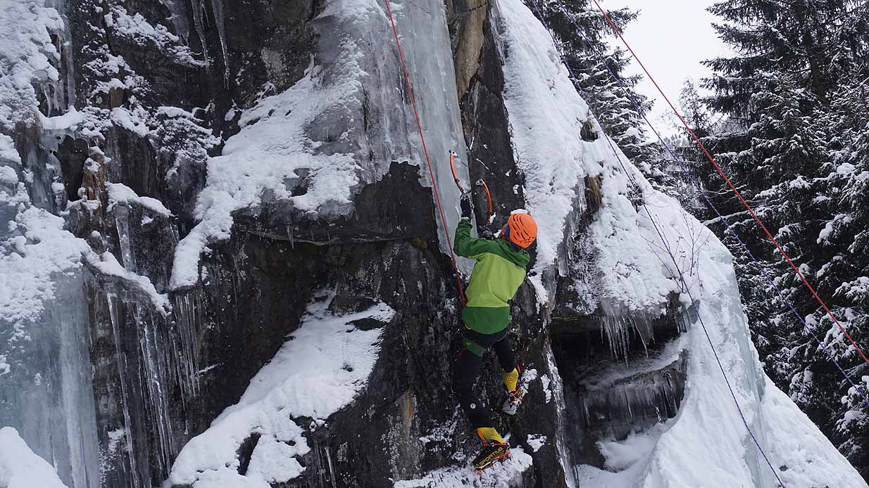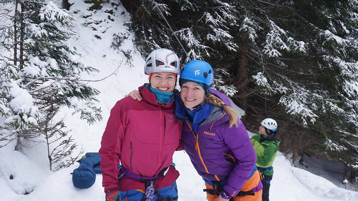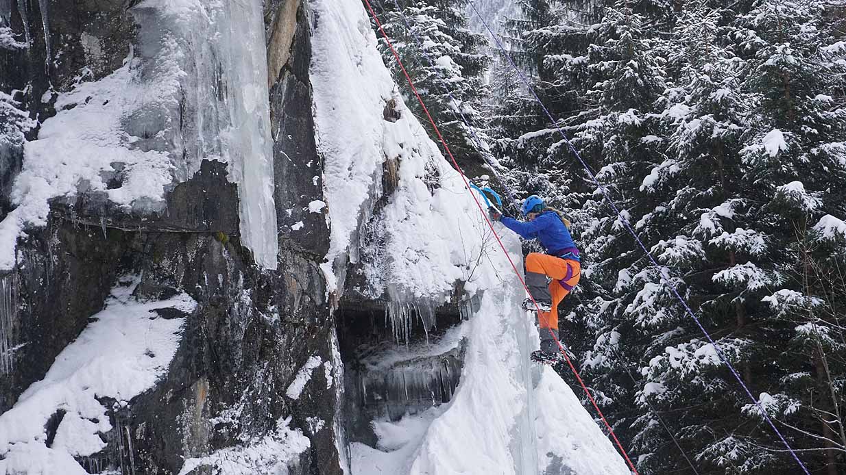 Eisklettern ist ein Freiluftsport und diesmal waren die Neuschnee Mengen eine besondere Herausforderung.