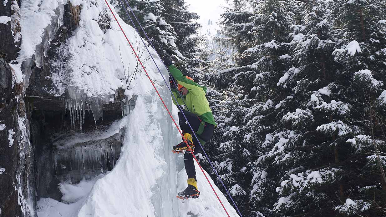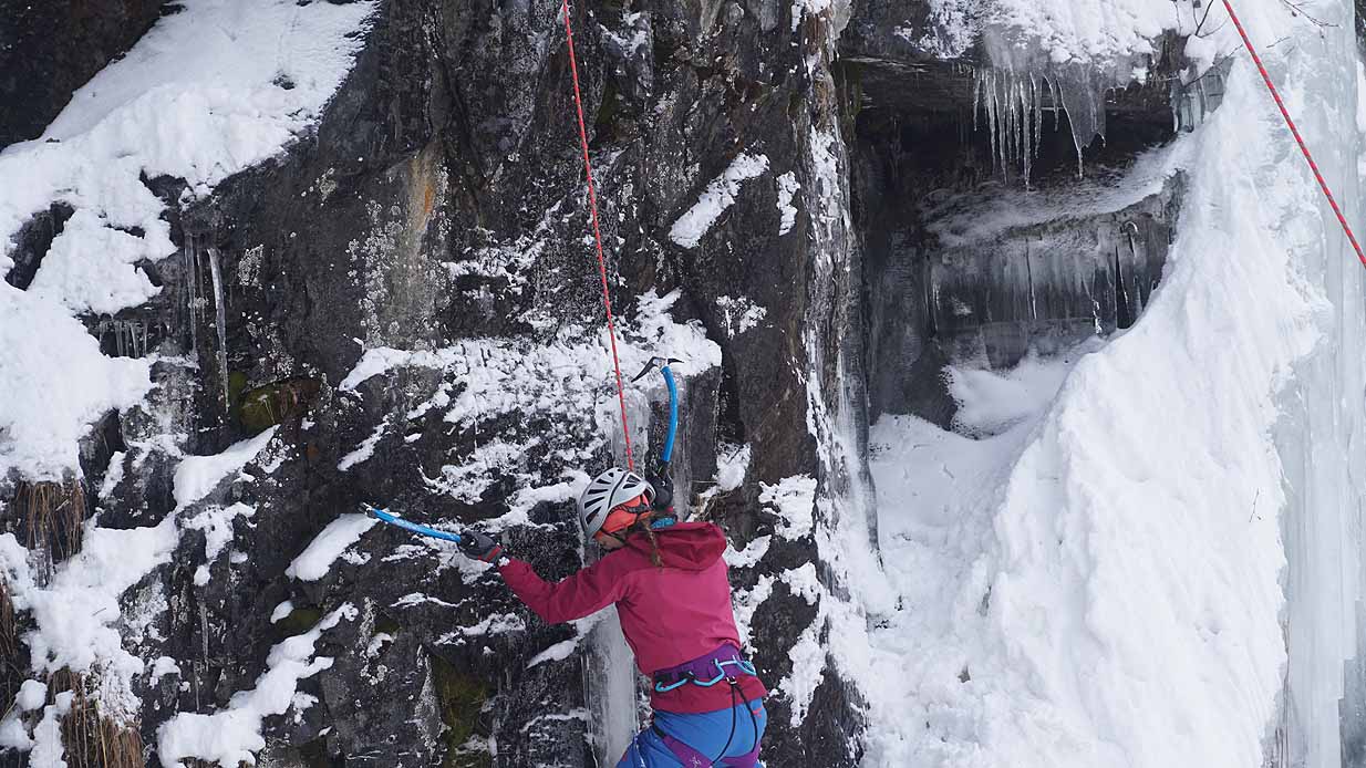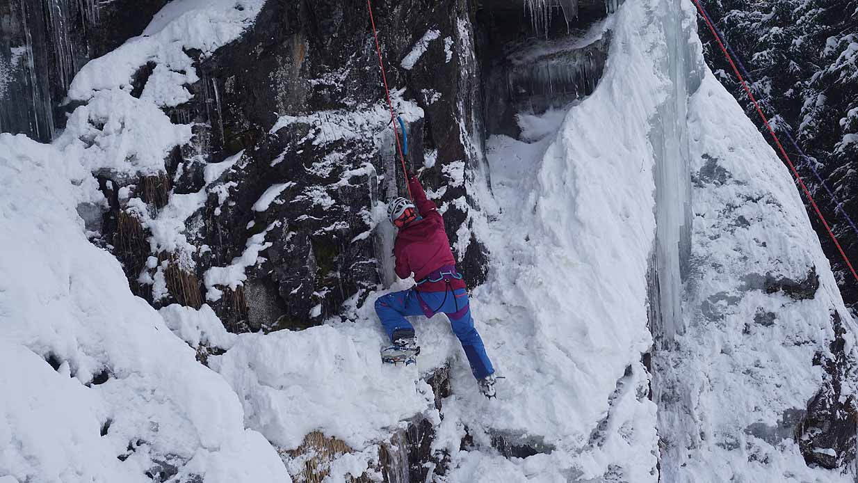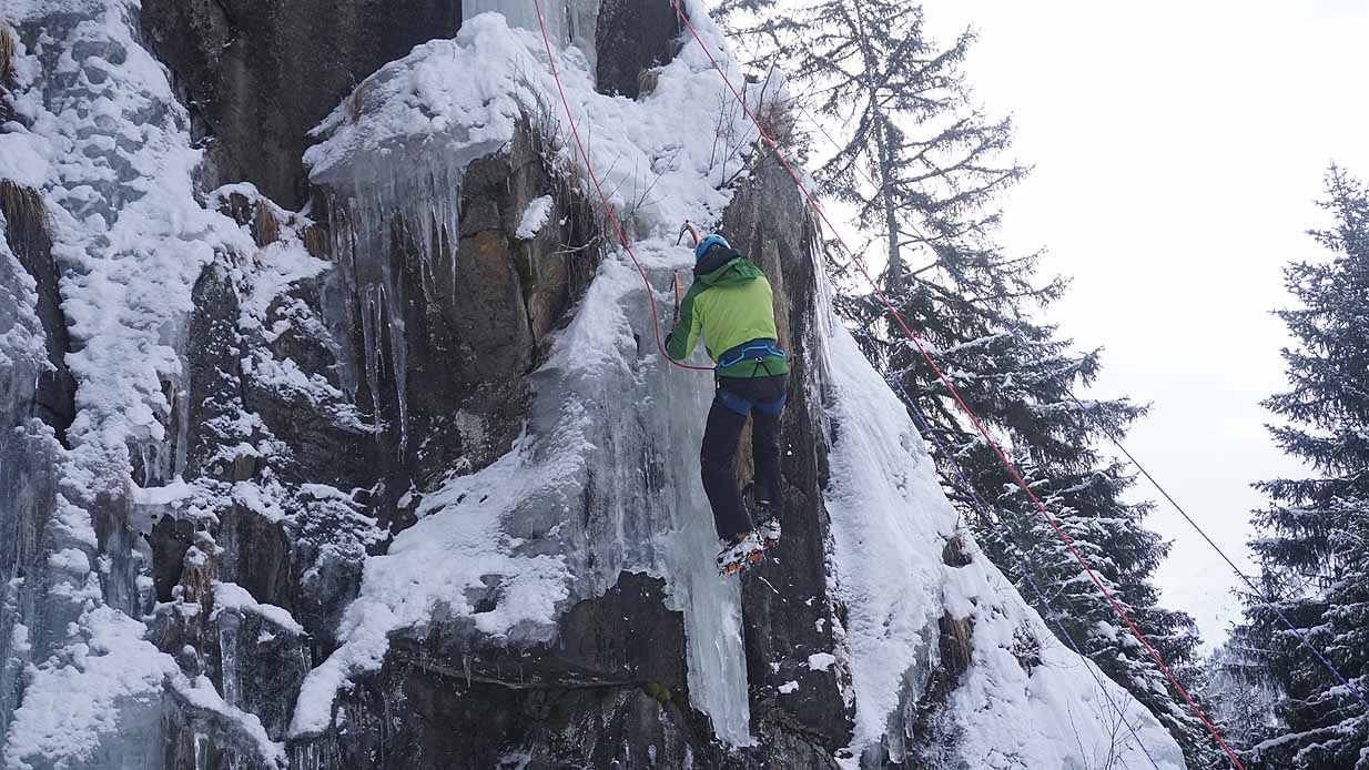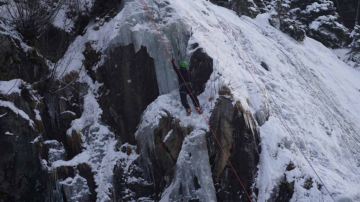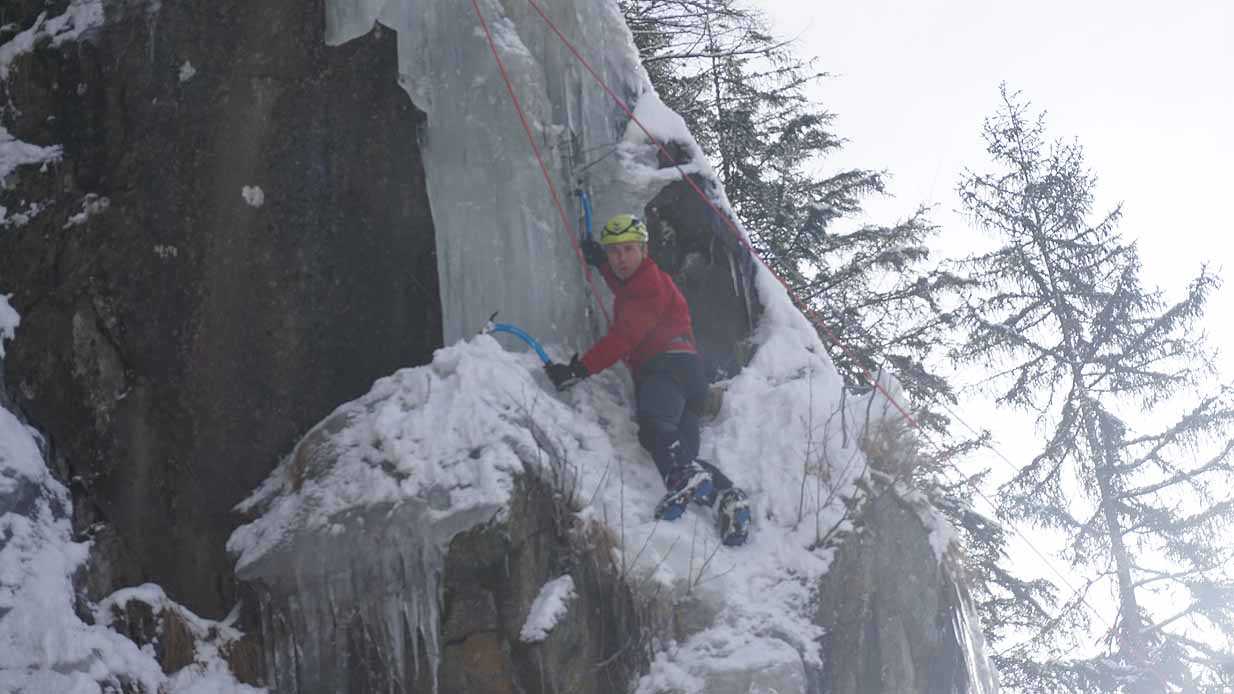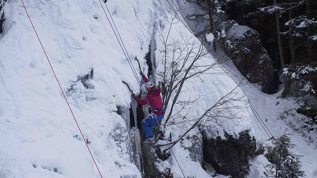 Eisklettern ist ein Freiluftsport und diesmal waren die Neuschnee Mengen eine besondere Herausforderung.
