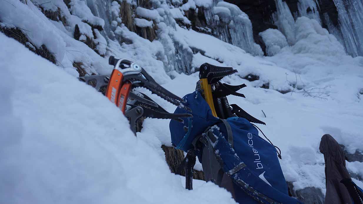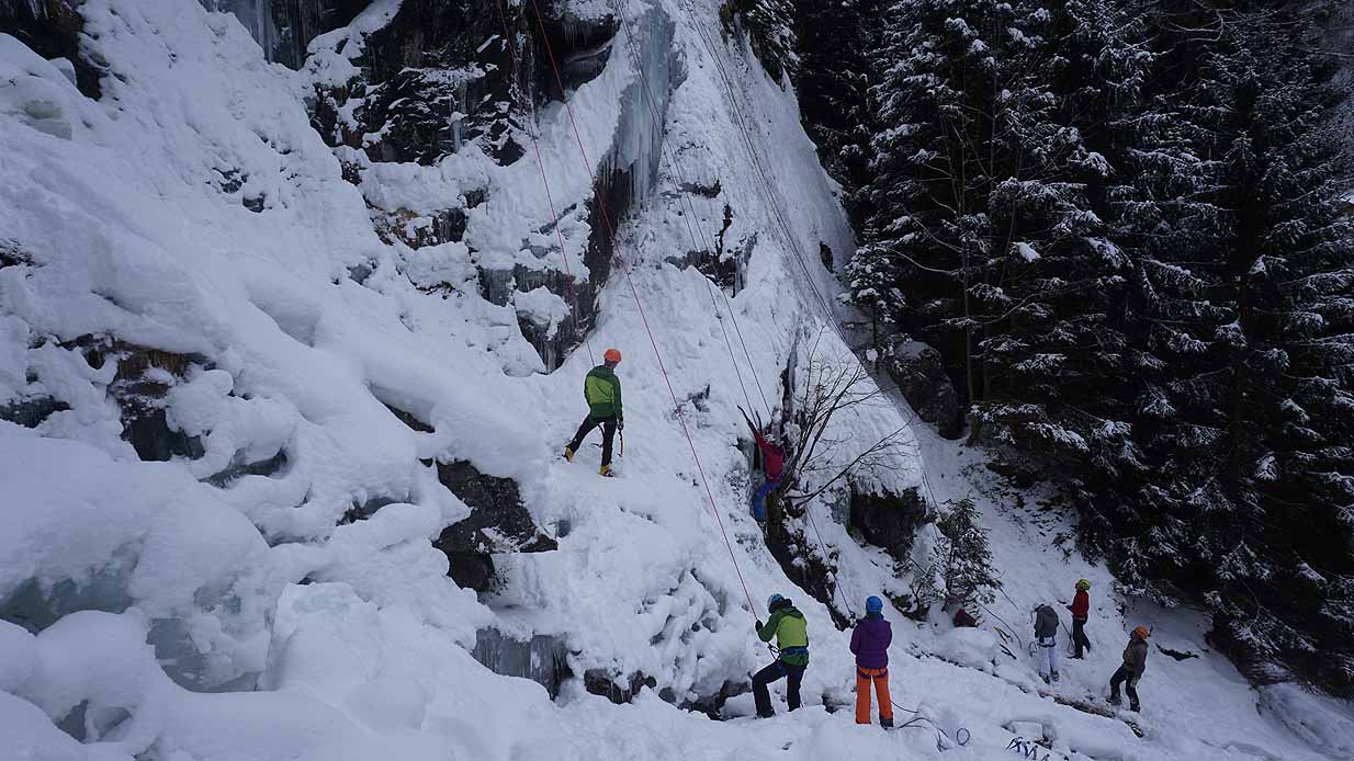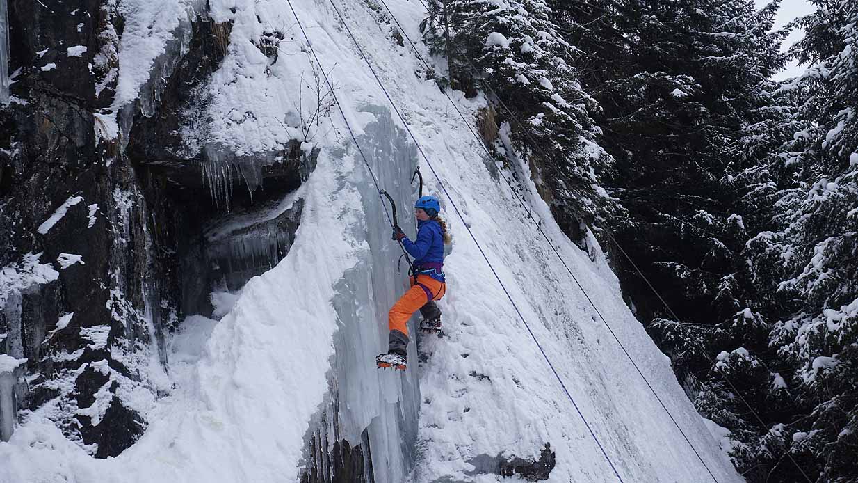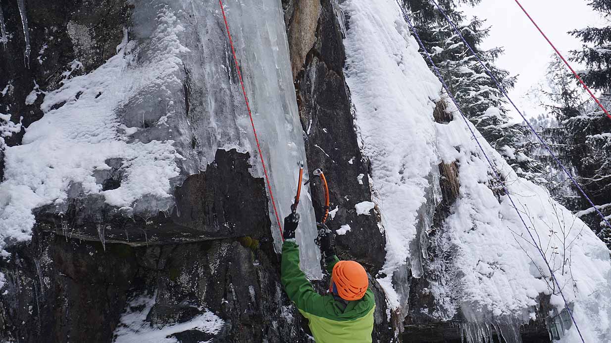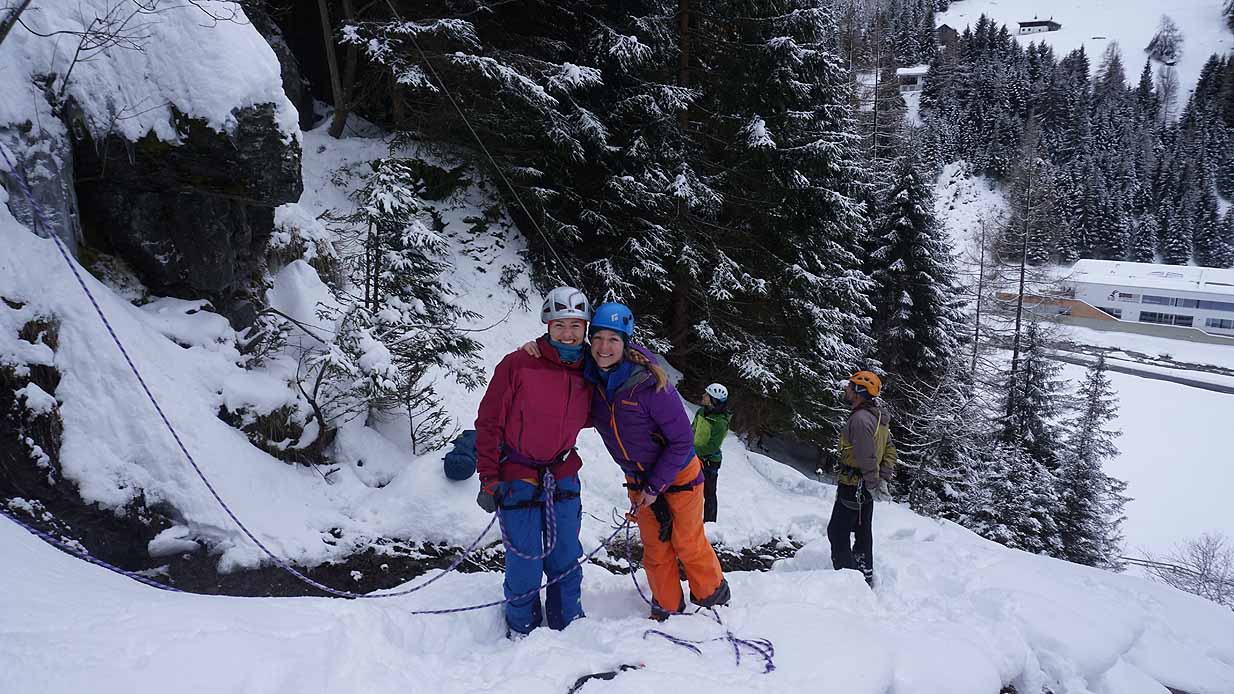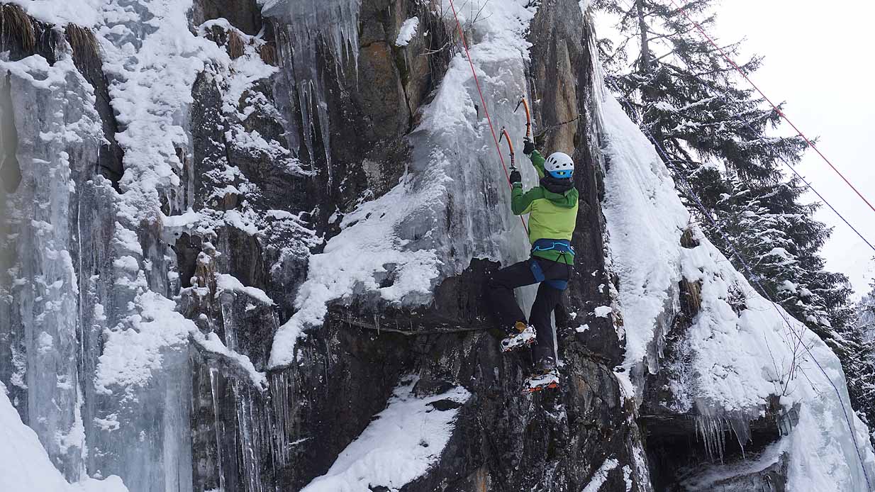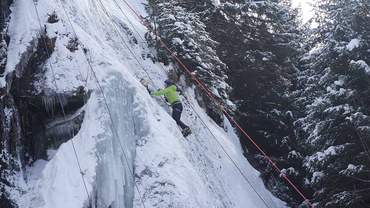 Eisklettern ist ein Freiluftsport und diesmal waren die Neuschnee Mengen eine besondere Herausforderung.