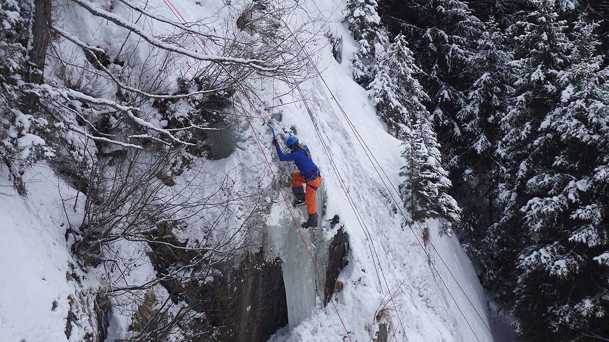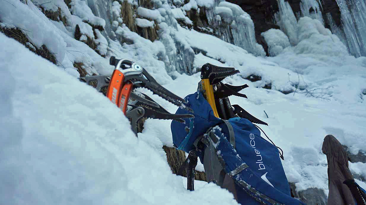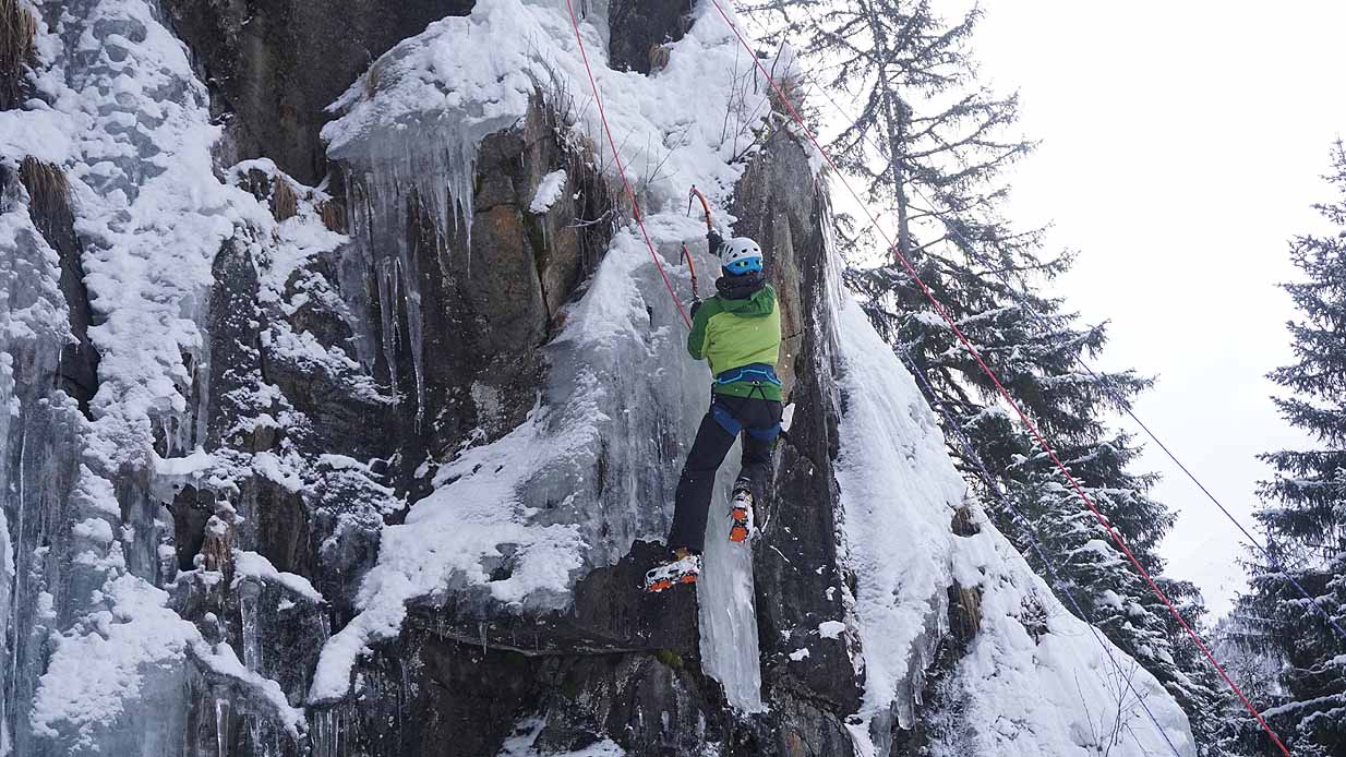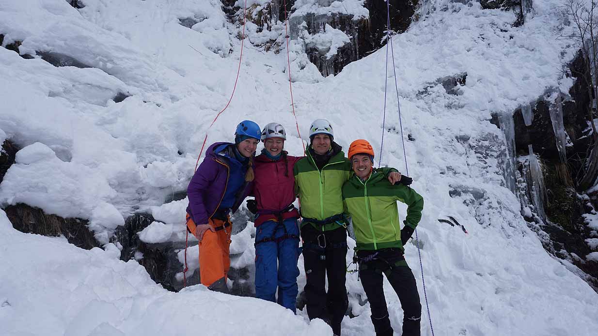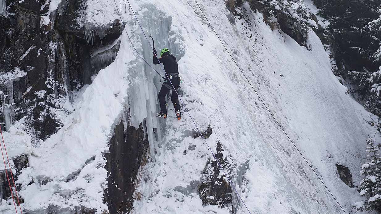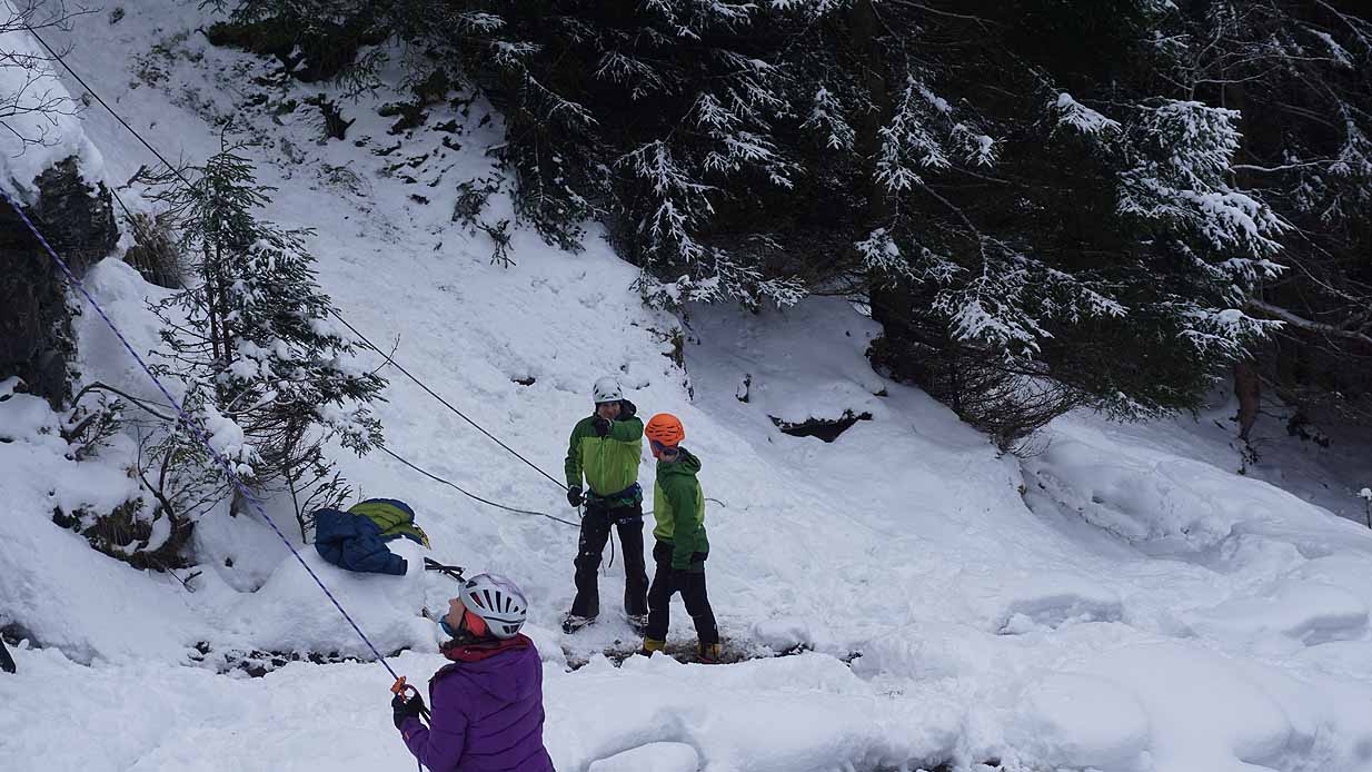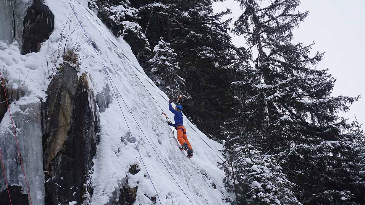 Eisklettern ist ein Freiluftsport und diesmal waren die Neuschnee Mengen eine besondere Herausforderung.