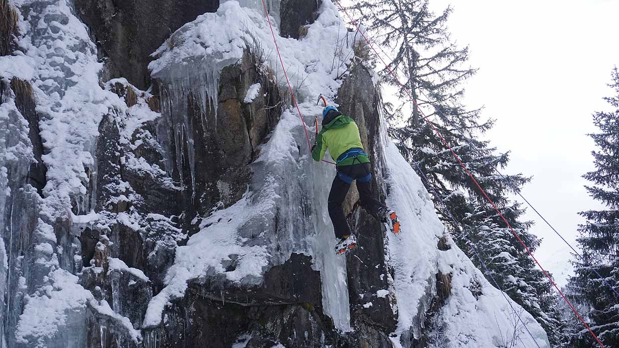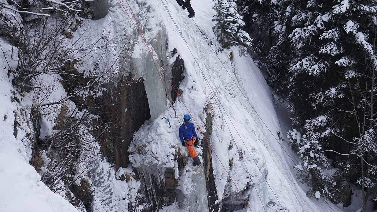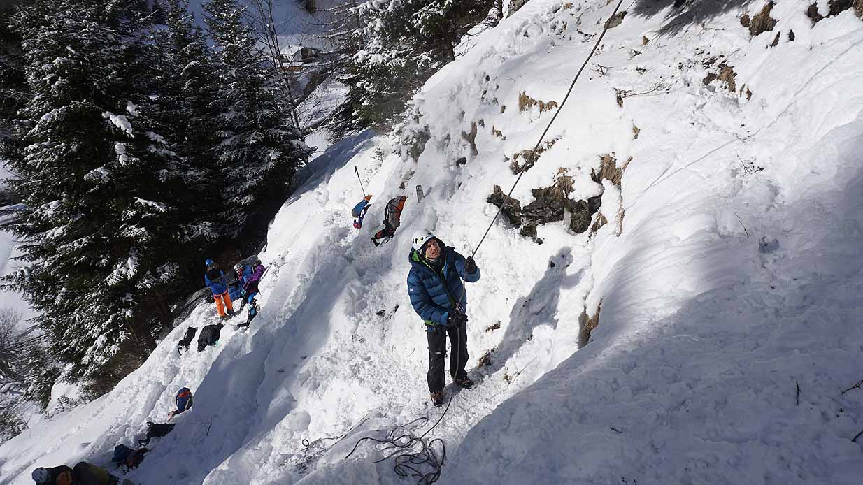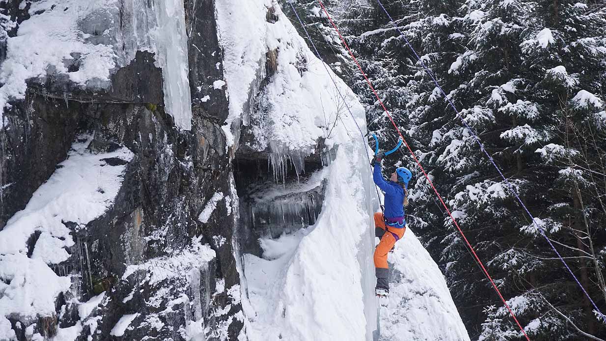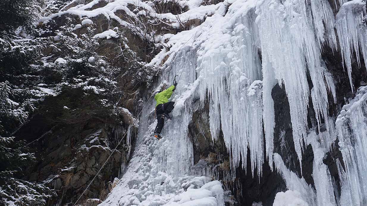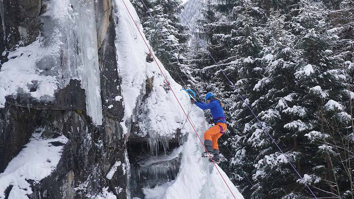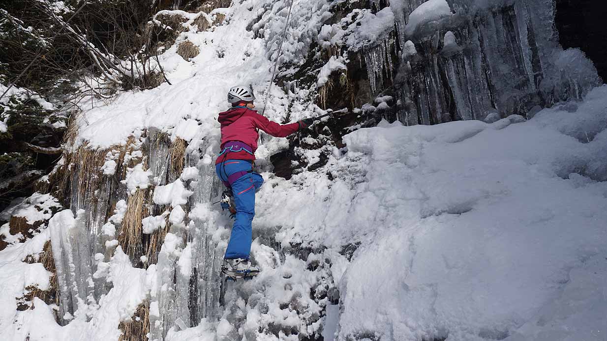 Eisklettern ist ein Freiluftsport und diesmal waren die Neuschnee Mengen eine besondere Herausforderung.