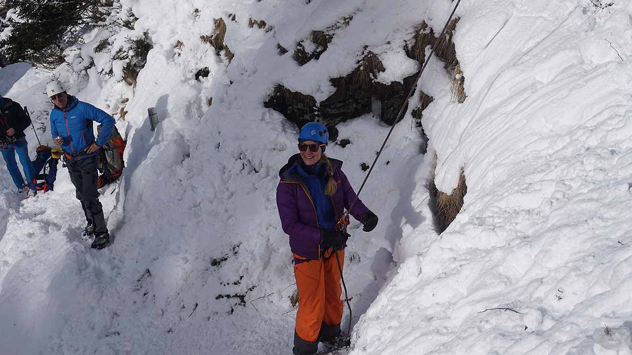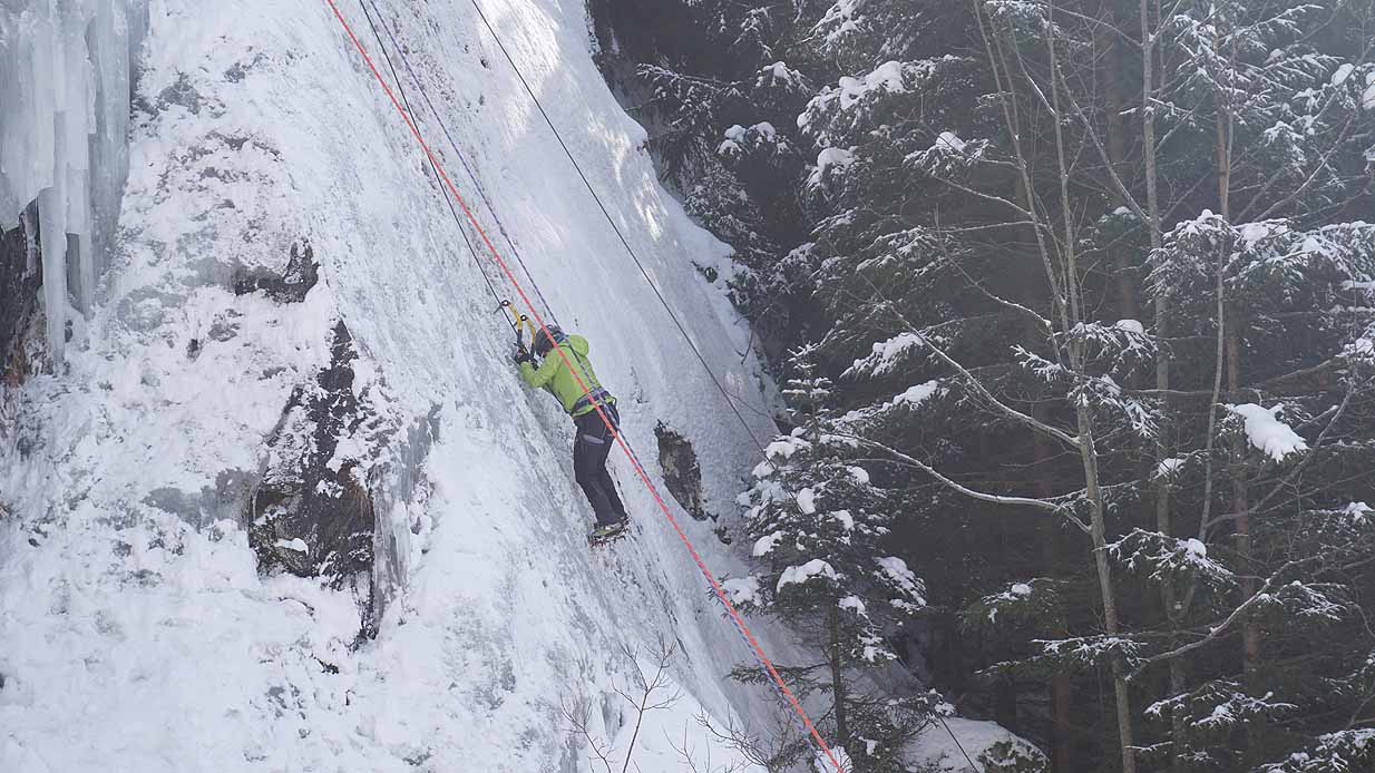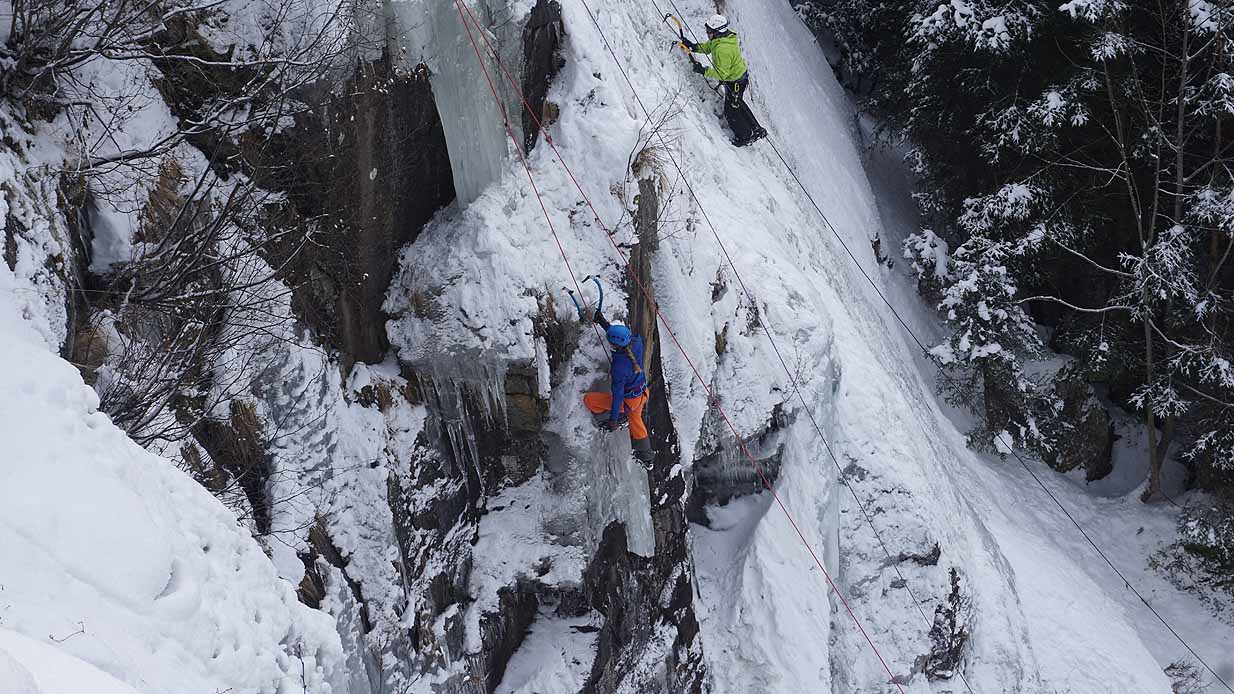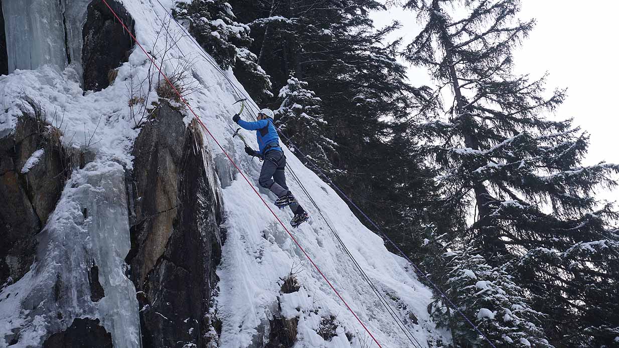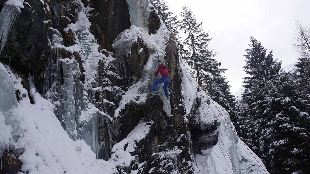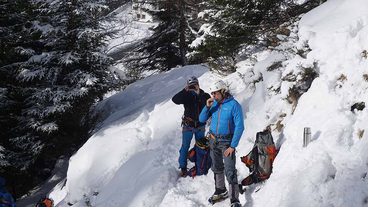 Eisklettern ist ein Freiluftsport und diesmal waren die Neuschnee Mengen eine besondere Herausforderung.