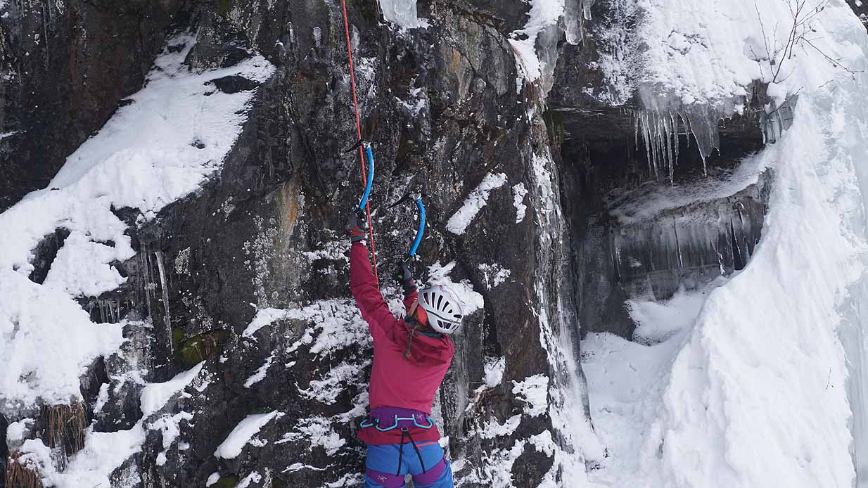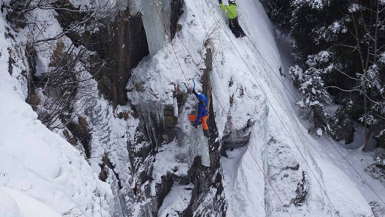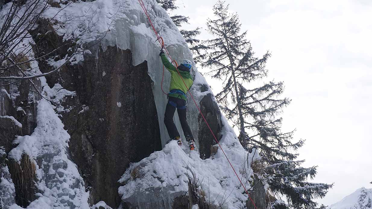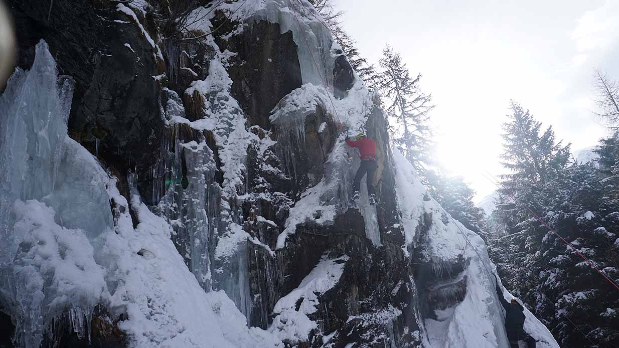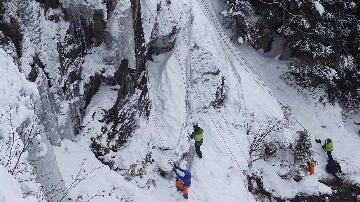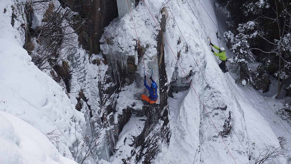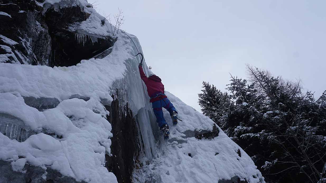 Eisklettern ist ein Freiluftsport und diesmal waren die Neuschnee Mengen eine besondere Herausforderung.