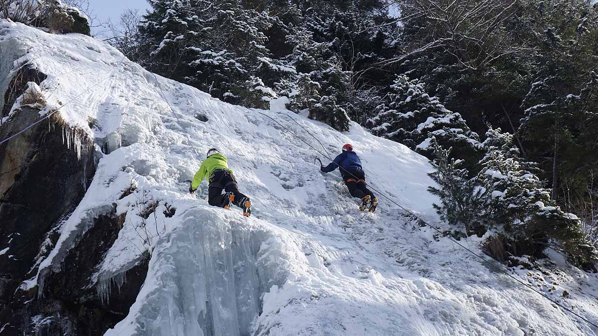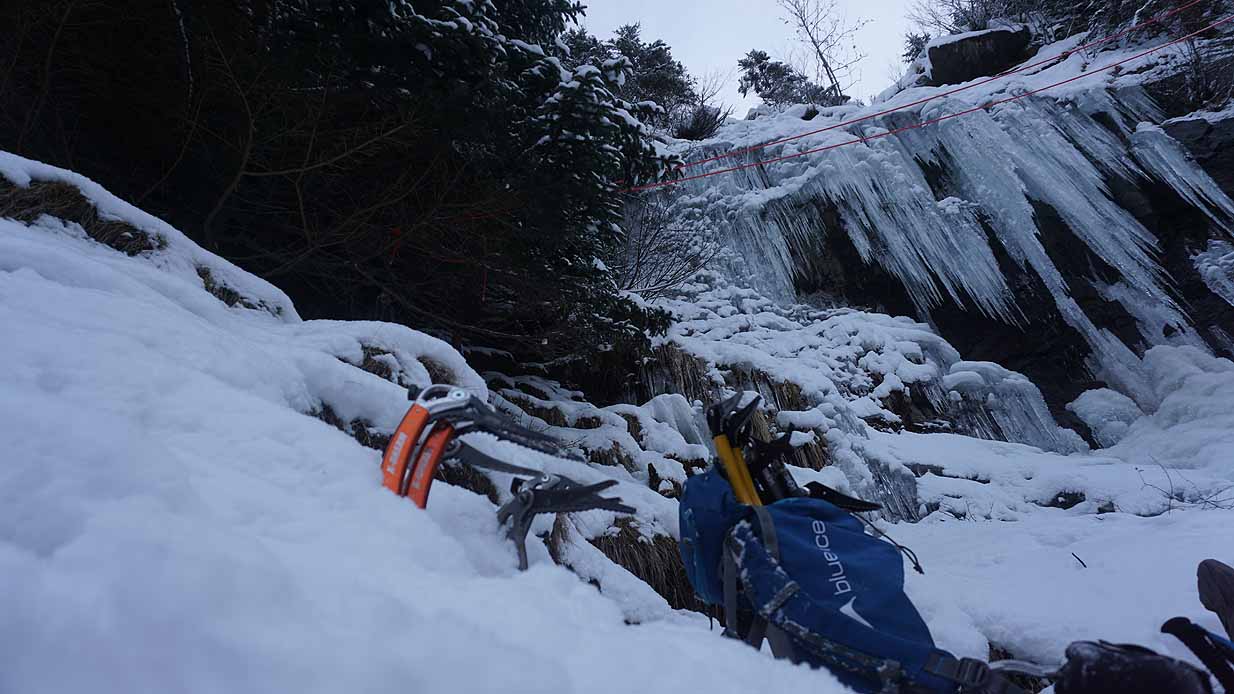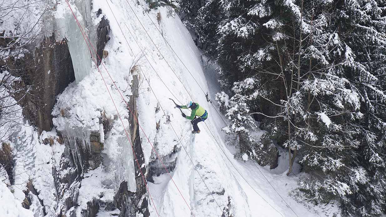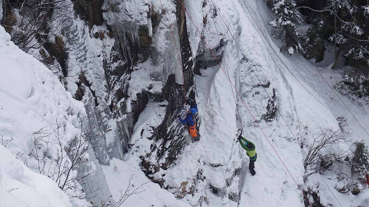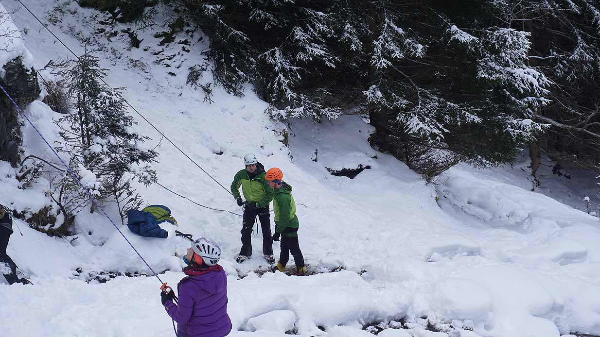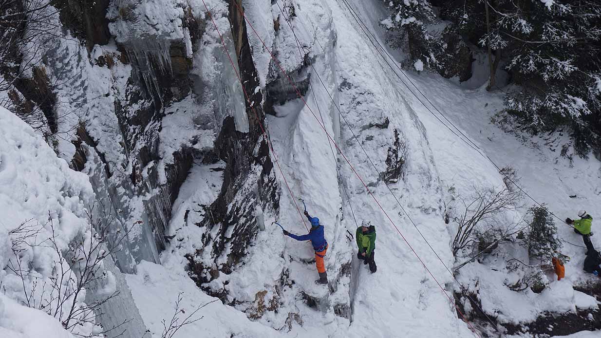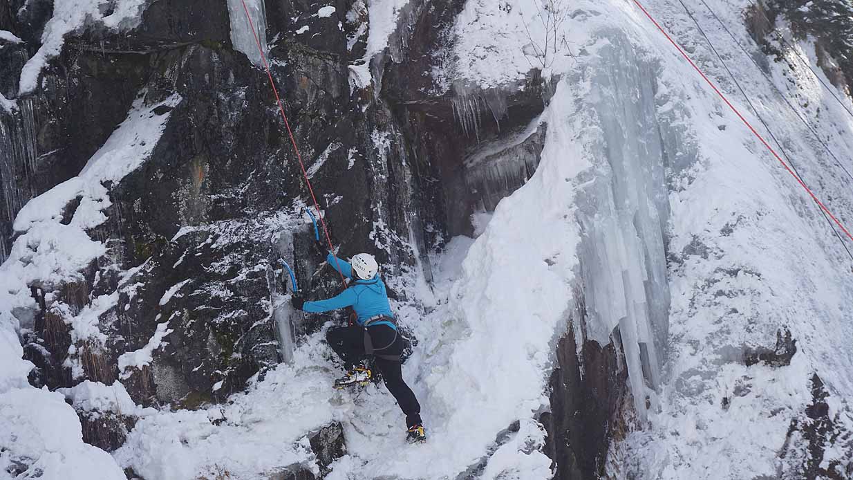 Eisklettern ist ein Freiluftsport und diesmal waren die Neuschnee Mengen eine besondere Herausforderung.