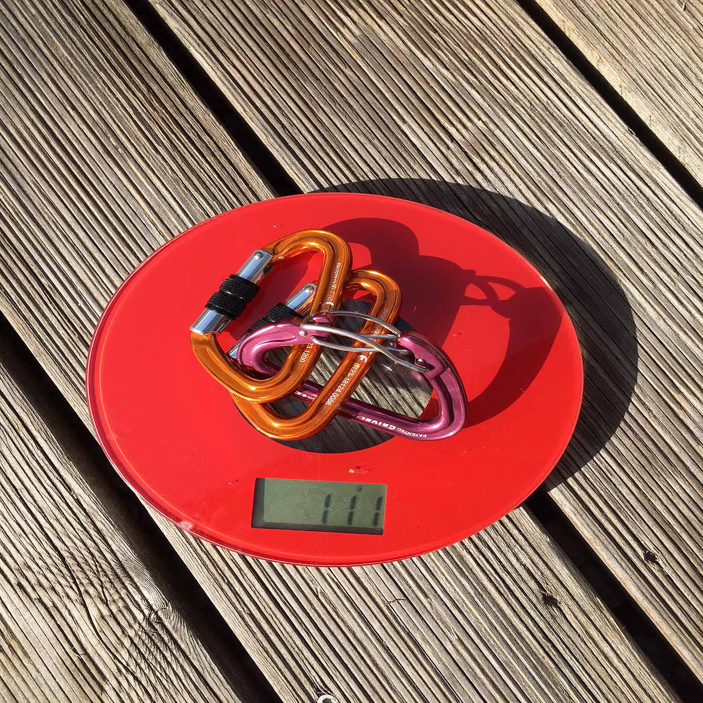Leicht Karabiner sind meist klein, nicht jedermanns Sache! Hier für die Gletscherausrüstung voll ok! Der Plume K3G von Grivel ist etwas gewöhnungsbedürftig, nur einen der Gates öffnen, der Zweite geht dann in der Bewegung. 39 Gramm für einen (selbstschließenden) gesicherten Karabiner, sehr geil!