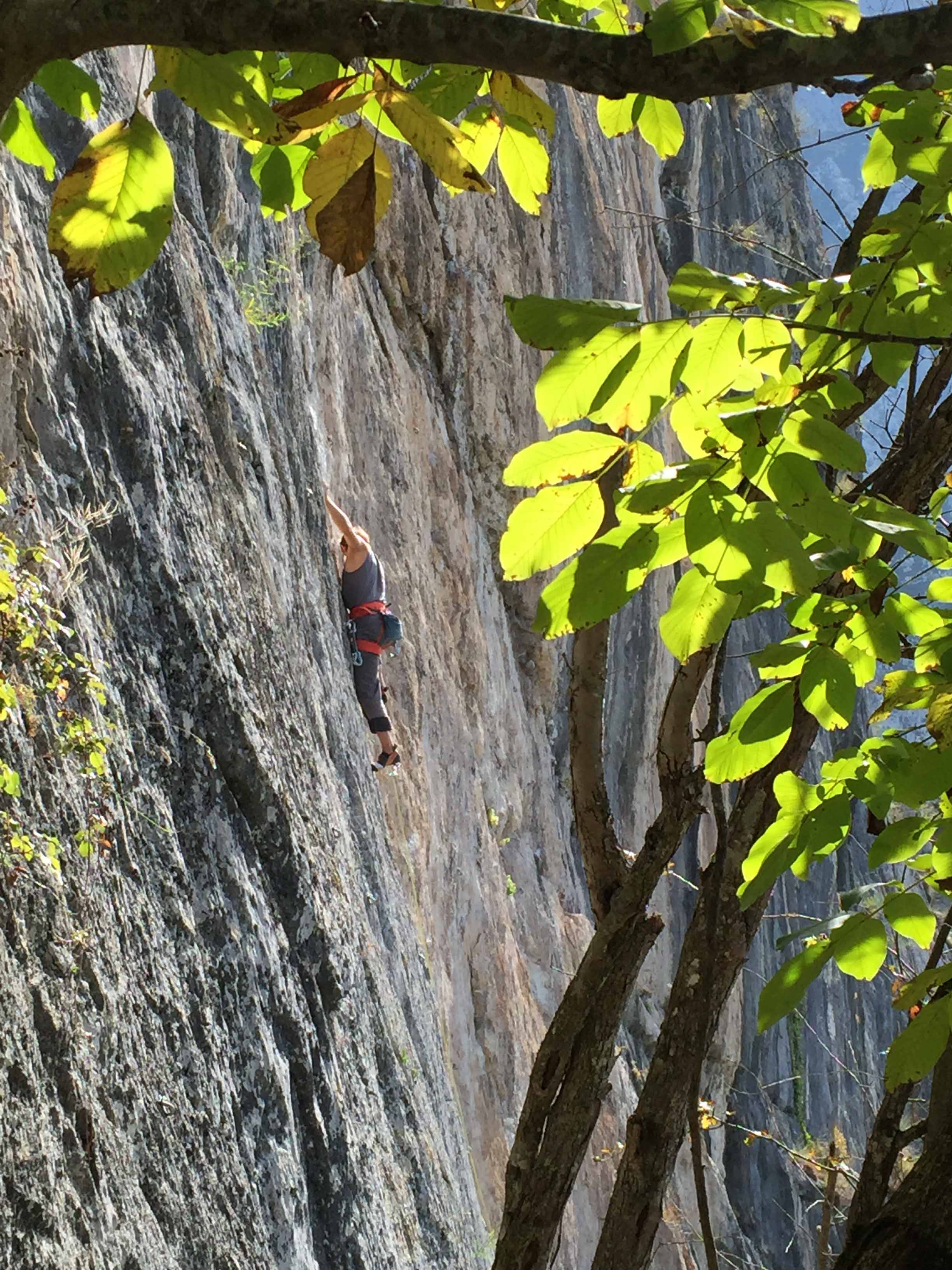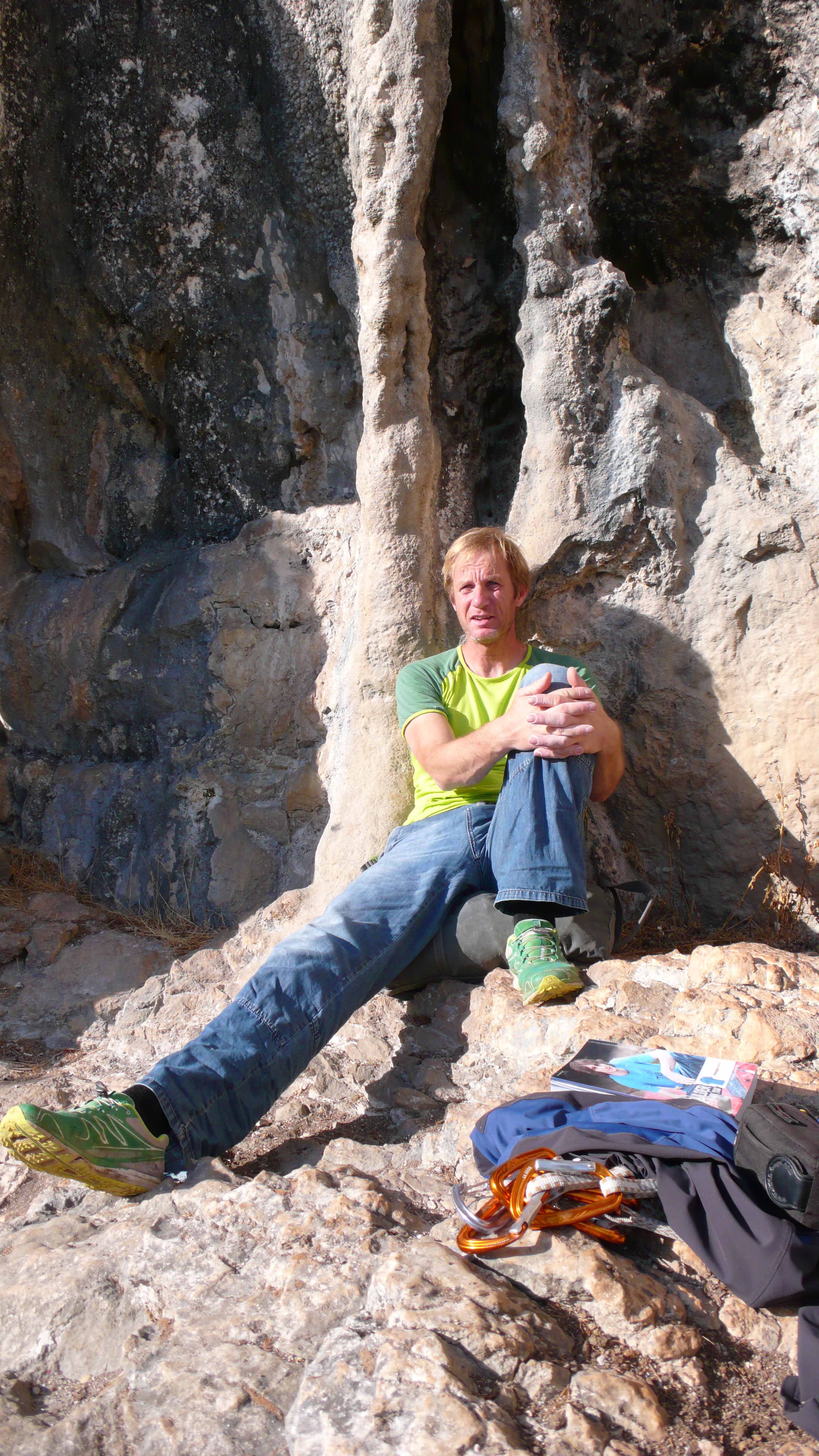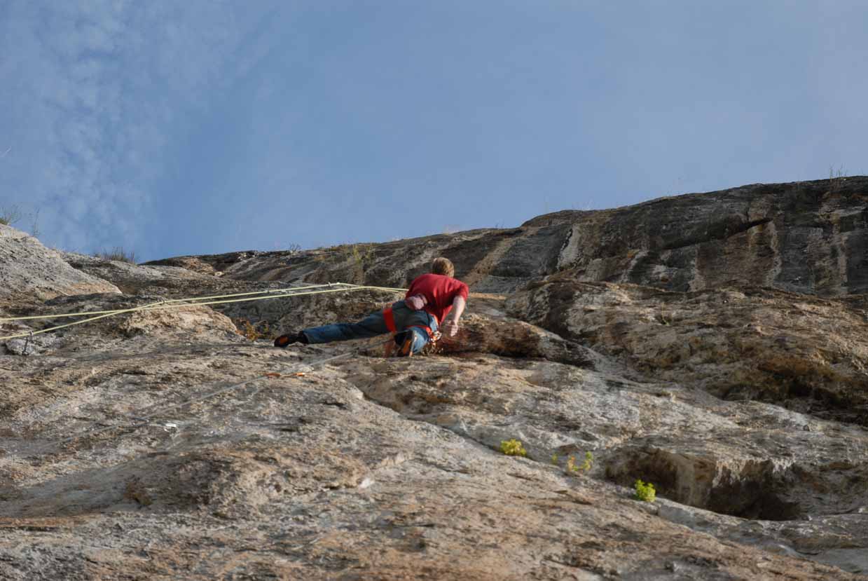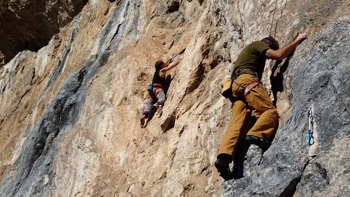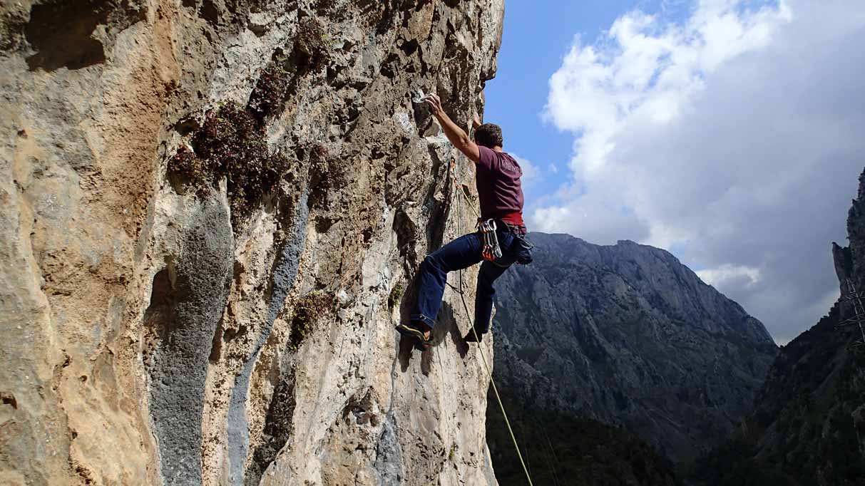 Poo de Cabrales, gleich nach dem Aufwärmen gehts immer am besten, 7a+ mit Schlüsselstelle vorm Umlenker