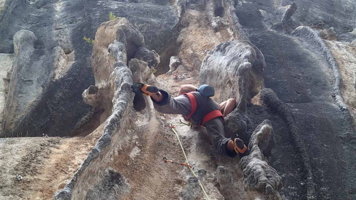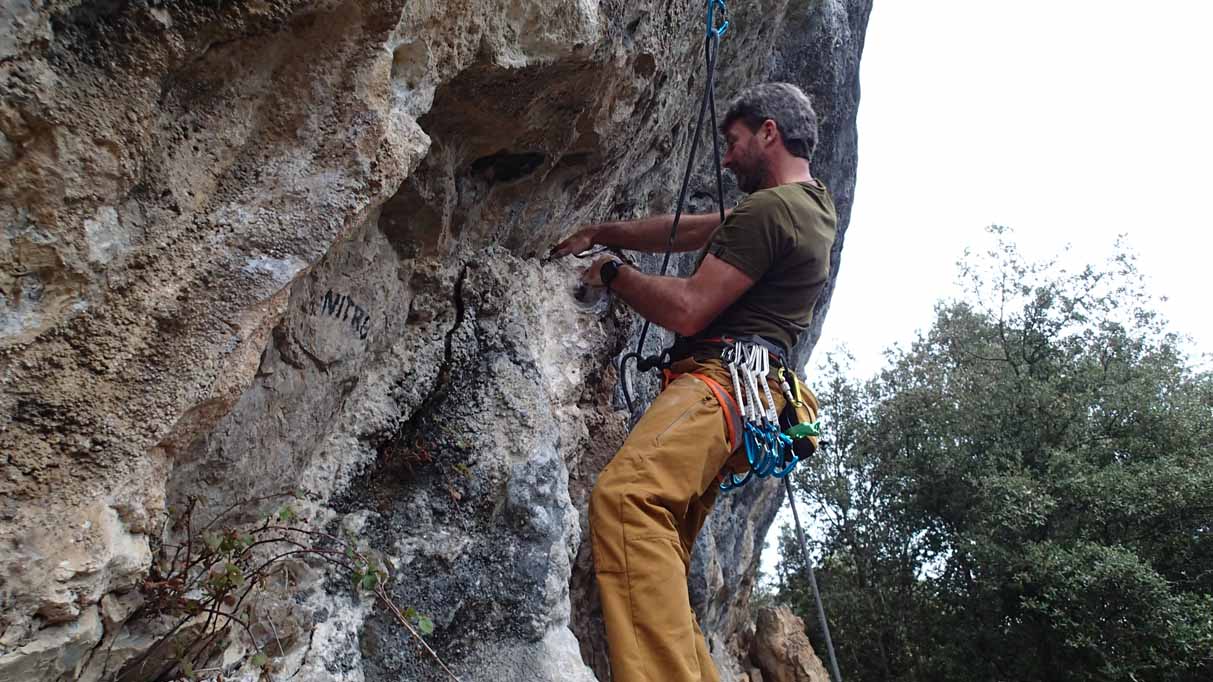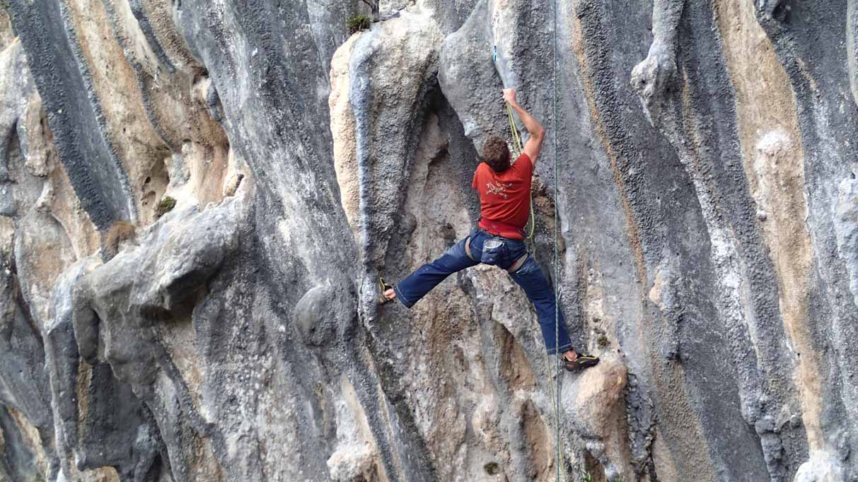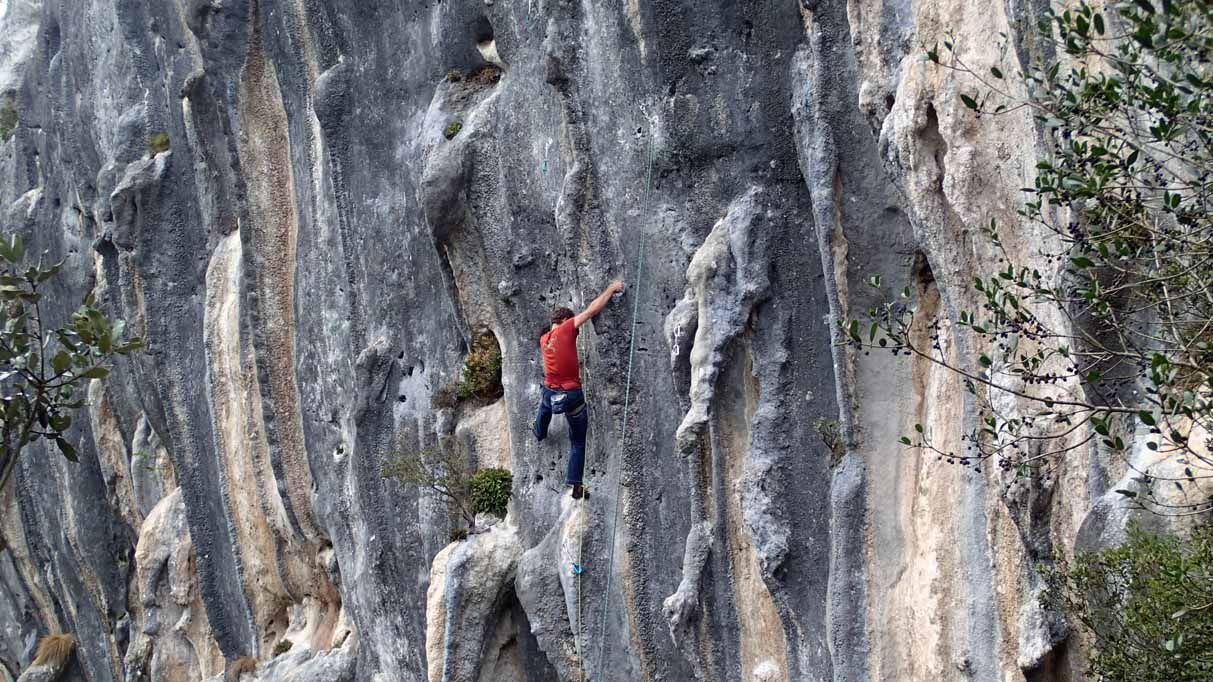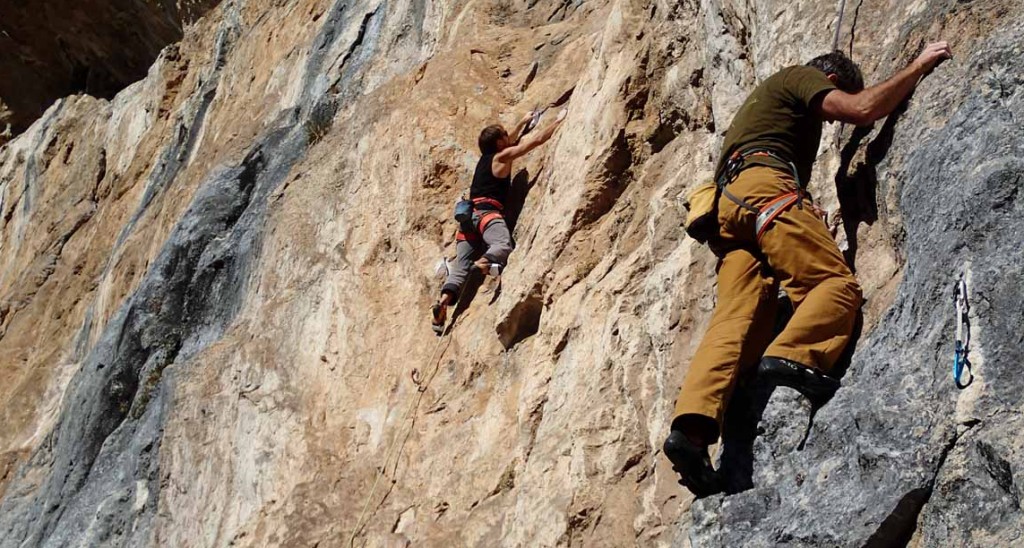 Poo de Cabrales, gleich nach dem Aufwärmen gehts immer am besten, 7a+ mit Schlüsselstelle vorm Umlenker